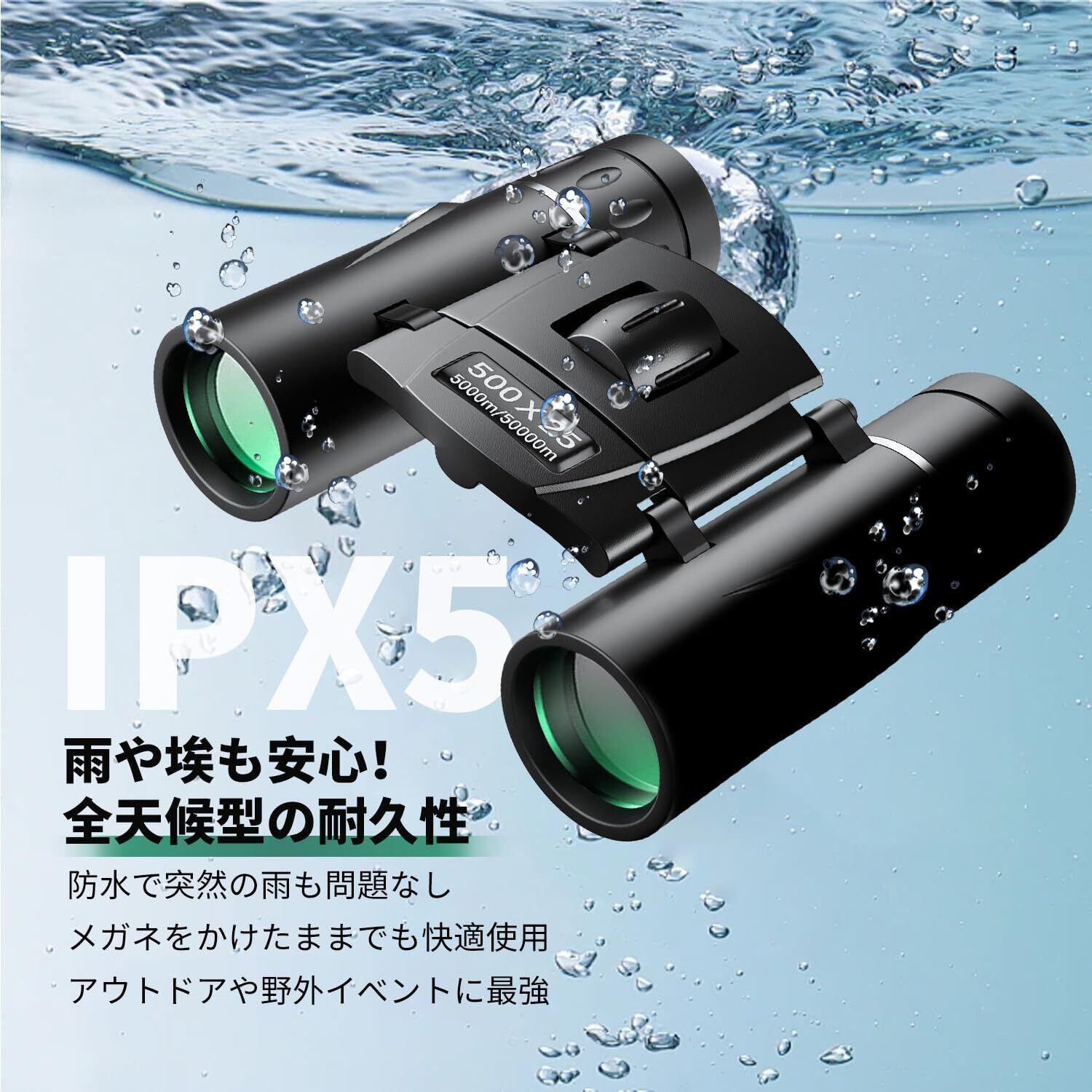 【多環境対応】微光夜視可能&IPX5防水機能で、昼夜問わずあらゆる環境で活躍 薄暗い場所でも対象を見やすくする微光夜視機能を備えているため、夕暮れ時のバードウォッチングや、屋内の薄暗い劇場・ライブハウスなどでも力を発揮します。さらに、IPX5等級の防水性能により、突然の雨や水しぶきにも安心。アウトドアシーンでも臆することなくお使いいただけます。一台あれば、昼夜・天候を問わず、あらゆるシチュエーションでお楽しみいただけます。