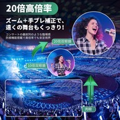 【高倍率&手ブレ補正】20倍高倍率+手ブレゼロ機能で、驚きのクリア視界を実現 20倍の高倍率でありながら、独自の防振機能(手ブレ補正) を搭載。拡大すると発生しがちな映像のブレを大幅に軽減します。例えば、コンサートで遠くのアーティストの表情まではっきりと捉えたり、野鳥の細かな羽の動きを安定して観察したりすることが可能。揺れる電車内や、興奮して少し手が震えるような場面でも、ブレのない安定した視界をお約束します。