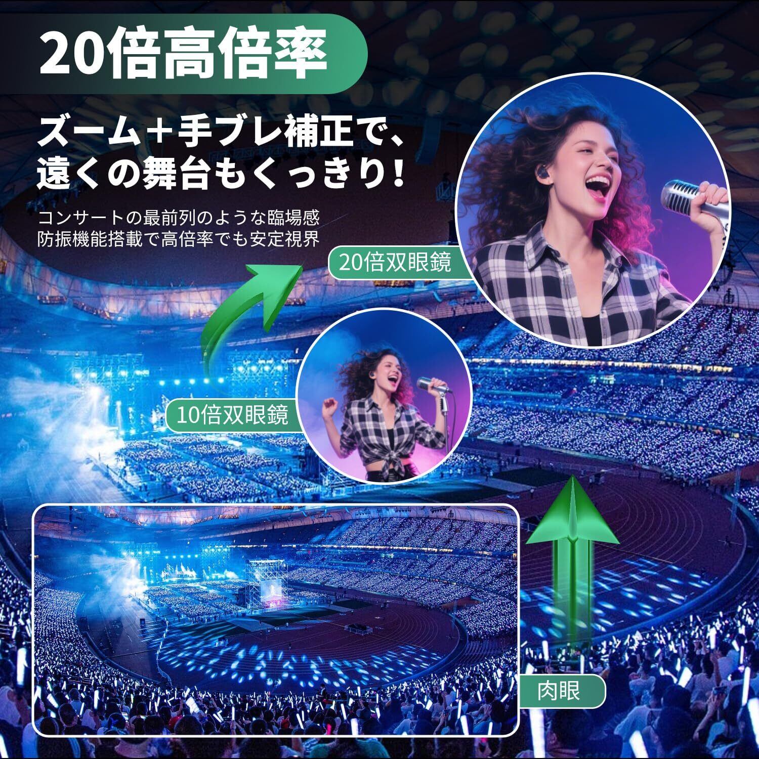 JUUMIIY 双眼鏡 ライブ用 20倍 高倍率 オペラグラス 【BAK4プリズム & FMCコーティングで高精細】超軽量 小型 コンパクト 手のひらサイズ 自動焦点(オートフォーカス)機能付き 防振 手ブレ補正 観劇 コンサート ミュージカル 劇場 バードウォッチング 望遠鏡 初心者 男女兼用