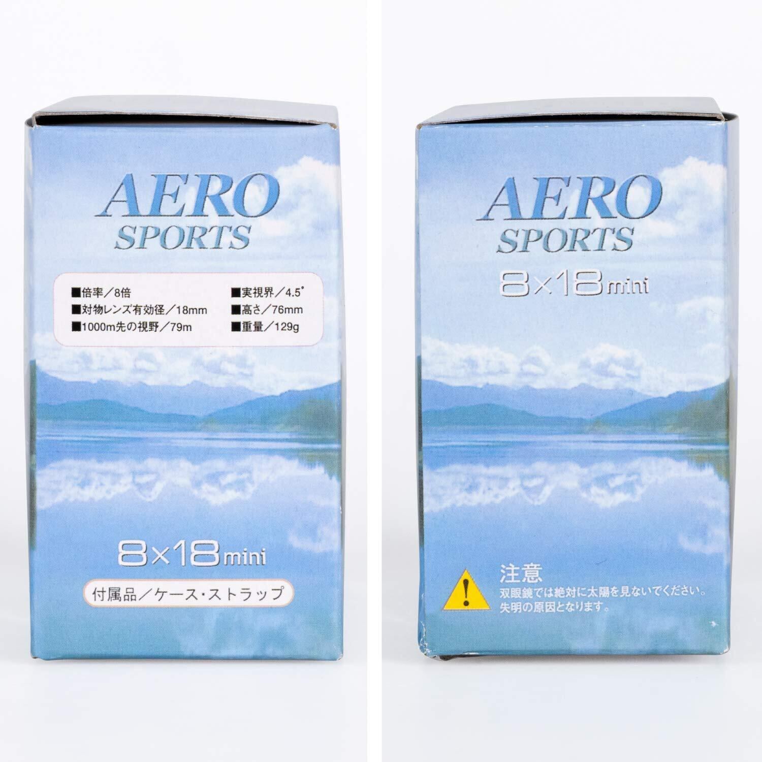 AERO SPORTS 8×18 miniはシルバーカラーのスポーティーなデザイン。重さはたったの129gと超軽量で、どこに持ち歩くのにも大変便利です。