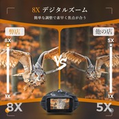 600mまで暗視・IRで3段階調節:IRモードには3段階で調節でき、35W/850nm IRイルミレーターと全光学システムを備えており、完全な暗闇でも最大距離600メートルでクリアなイメージで視認が可能です。ほかの7段階の暗視鏡と比べて、弊店の3段階調節がもっと簡単、IRモードの輝度がさらに強くなります。「撮影」「写真」「再生」の3つ機能を搭載し、昼/夜でも優れた光学的透明度で高清な写真やビデオを撮影できます。焼損しない完全デジタル暗視技術を用いた昼夜兼用暗視鏡です。