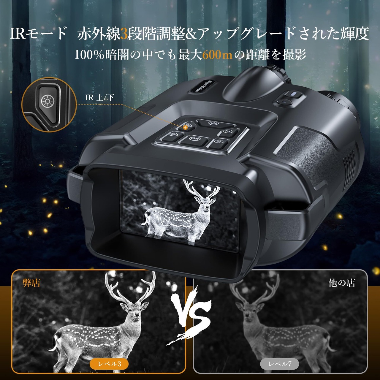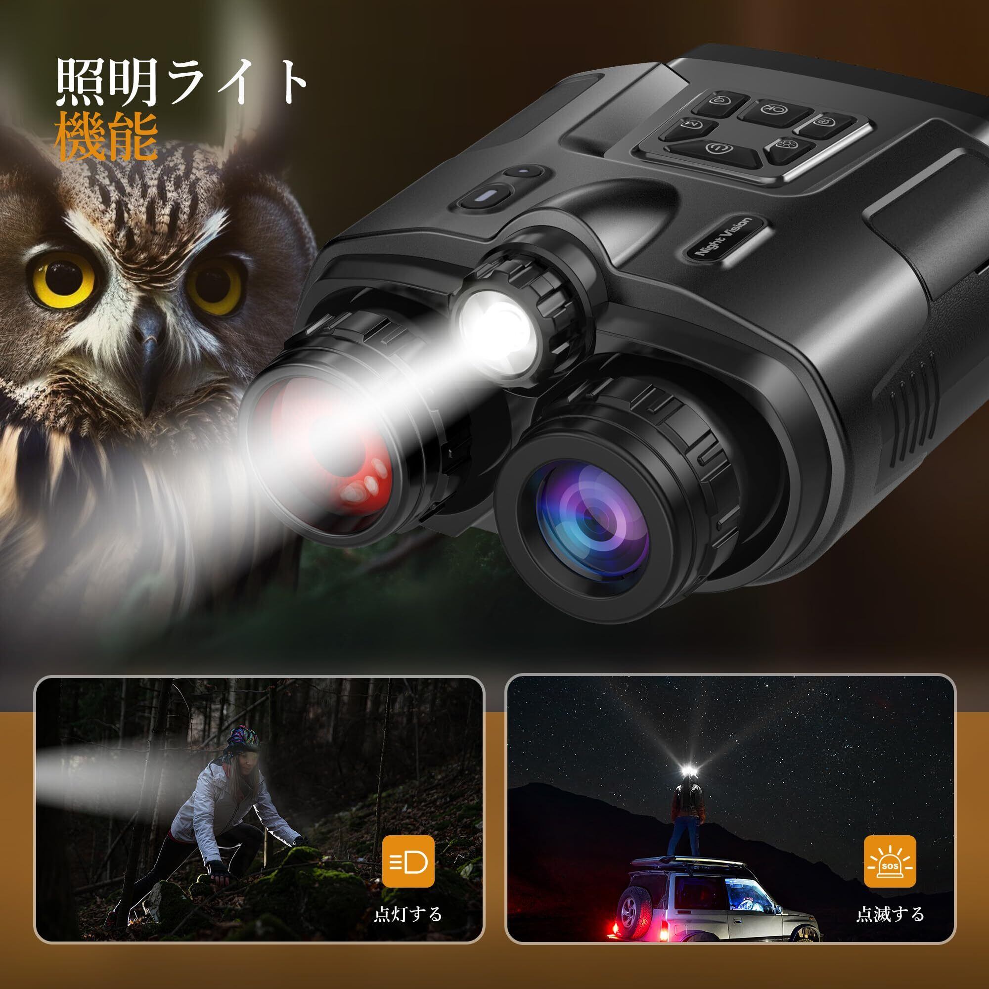 【数量限定】暗視スコープ 600mまで暗視撮影 ナイトスコープ 1台2役 暗視鏡 照明ライト付 3インチ 8Xデジタルズーム USB充電式 赤外線 4K 40MP画像 写真 カメラ 録画 夜間 暗視補正 防犯 警備 夜釣り キャンプ SOSライト