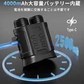 【大容量バッテリー内蔵】この暗視鏡は4000mAhの大容量バッテリーを内蔵しています、電池を頻繫に交換することは不要です、環境の汚染も回避し、コストの節約、大自然の保護なども役に立ちます。