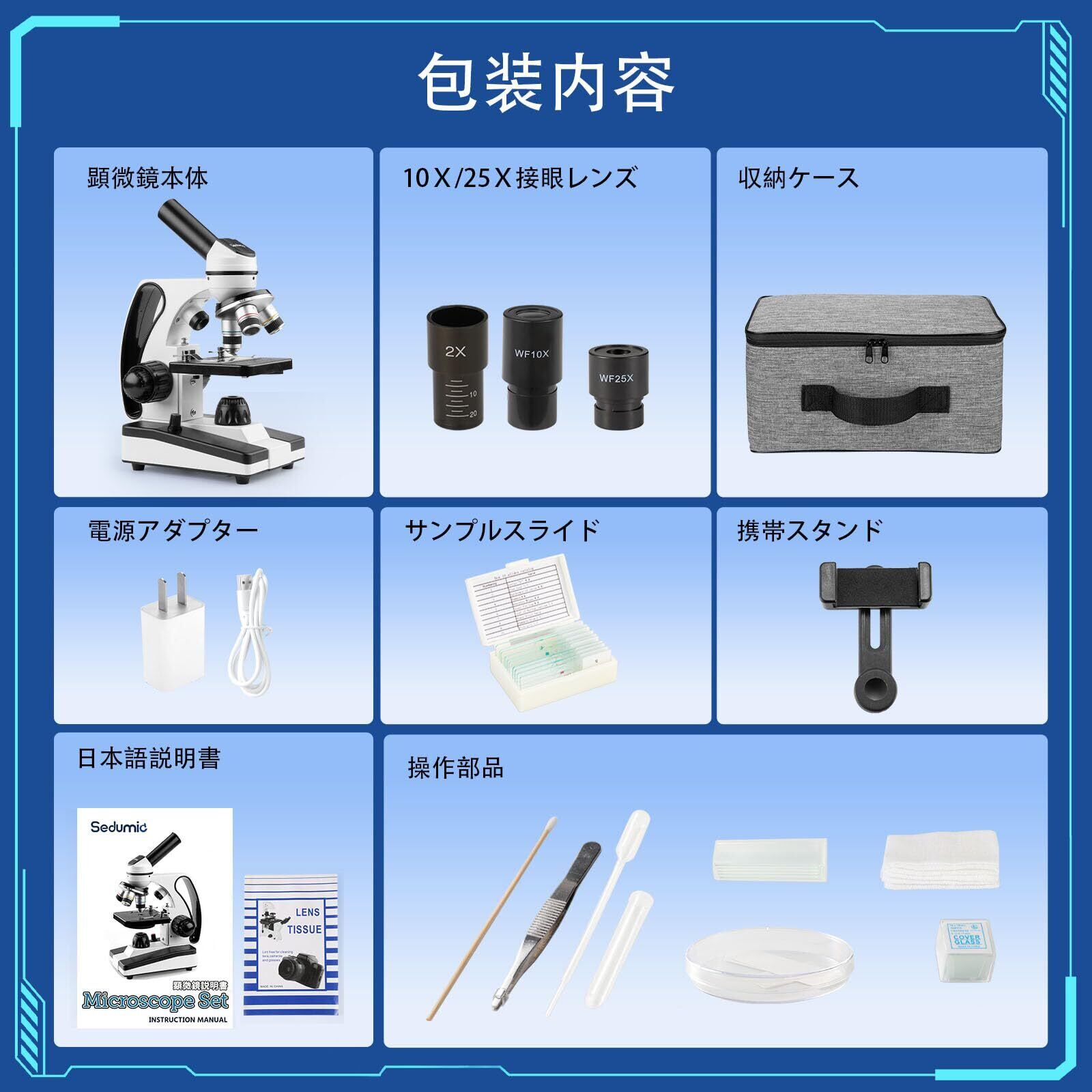 Sedumic 複合単眼顕微鏡 40X~2000X LED照明顕 一軸式粗微動ハンドル 広視野接眼レンズ 日本語説明書付き 携帯カメラ撮影可能 学生 子供 初心者 実験室 デモ教育用