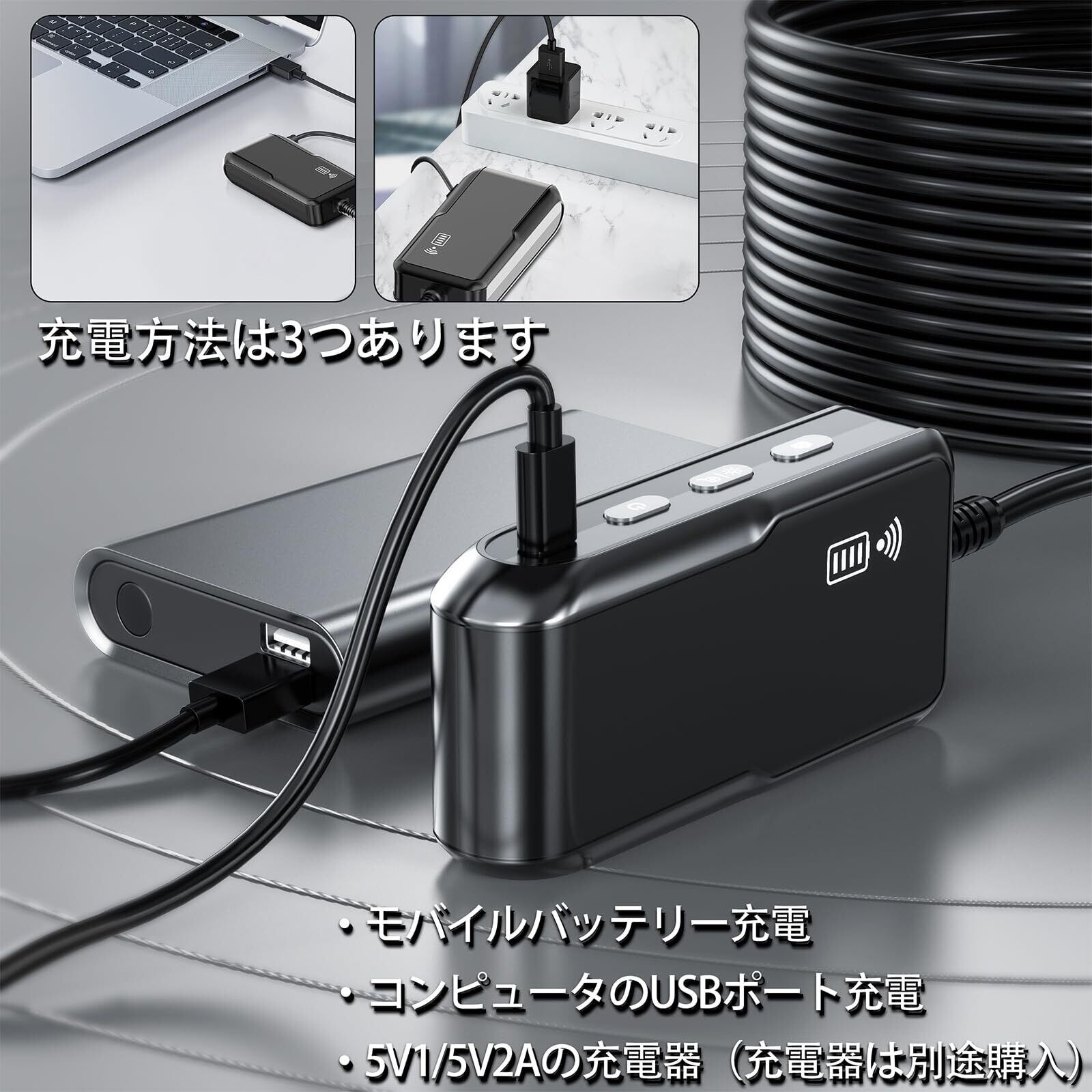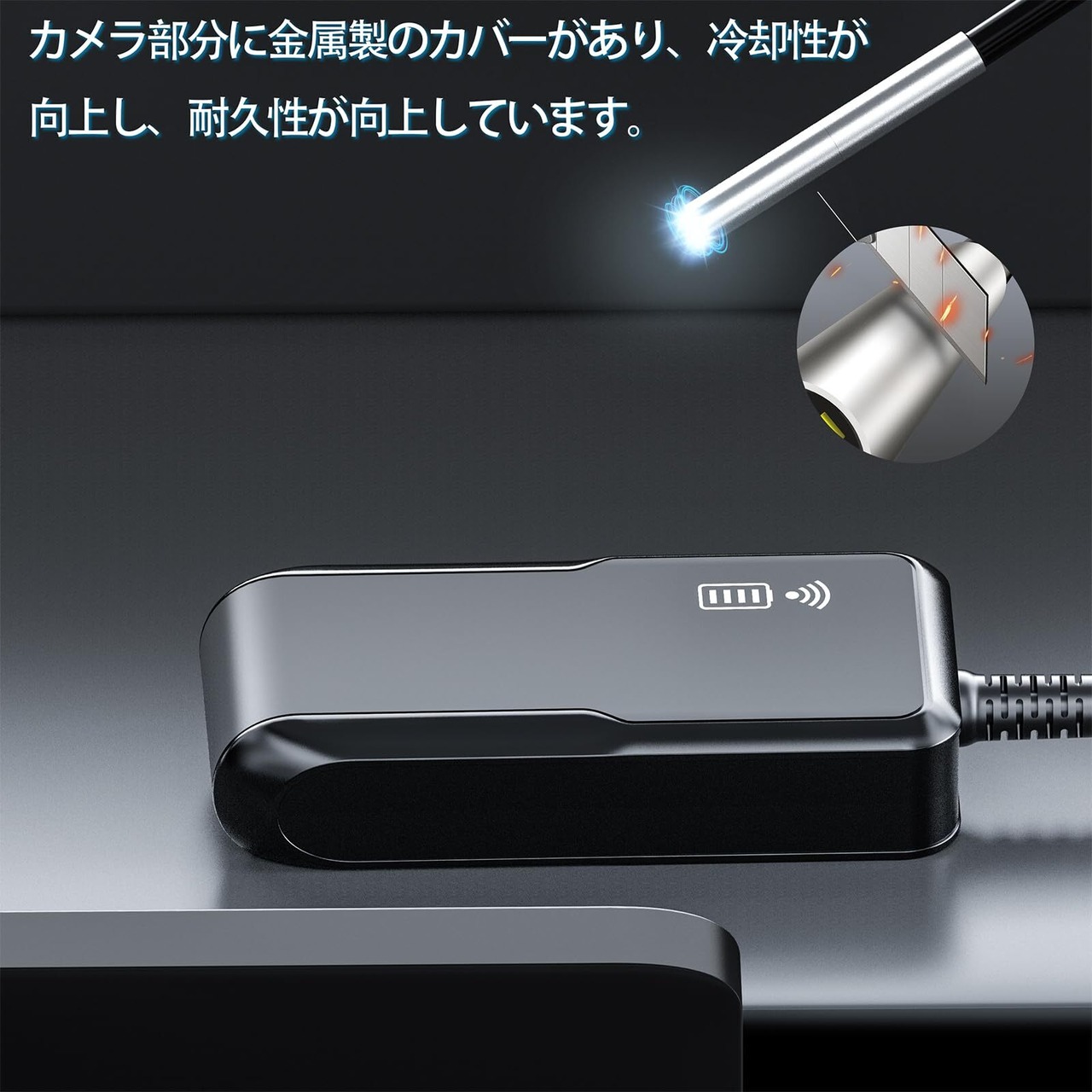 iPhone内視鏡カメラの防水機能:「カメラ部分は防水設計になっており、水中に深く入れて使用することができます。ただし、高温で腐食性のある液体中で使用しないでください。