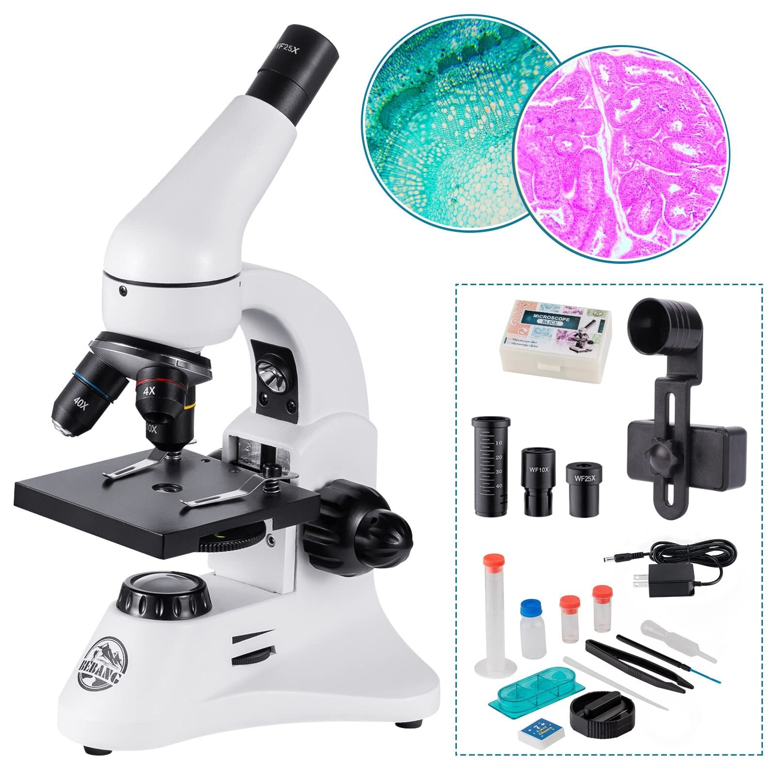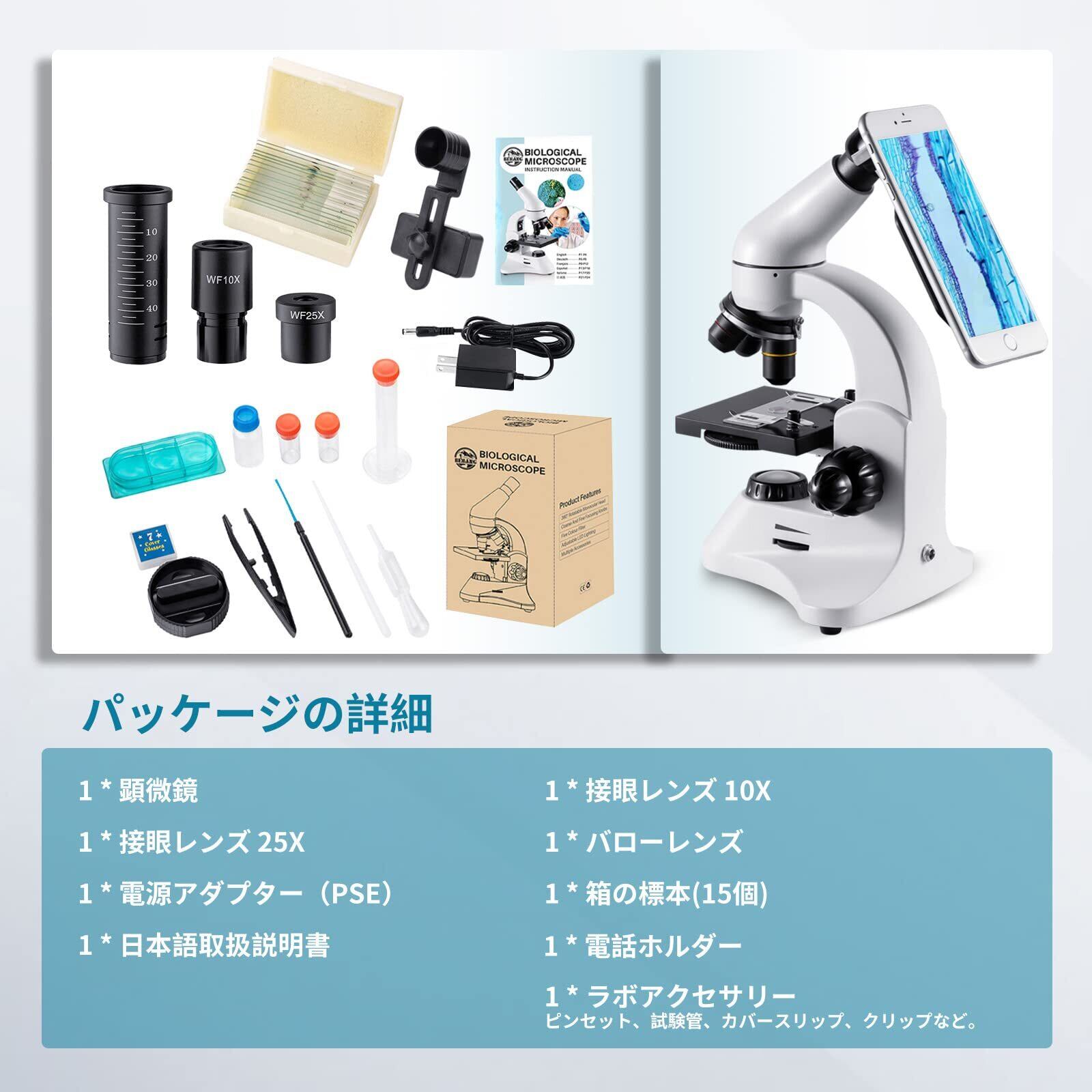完全な付属品と長寿命:スマホホルダー、研究用セット、プレパラートセット、は 子供 小学生 中学生 高校生や大人マニア 初心者、学校、実験室、家庭、一対一授業に適応します。電子顕微鏡と比較して、光学顕微鏡はより長い耐用年数を持ち、適切に保管すれば何十年も使用できます。