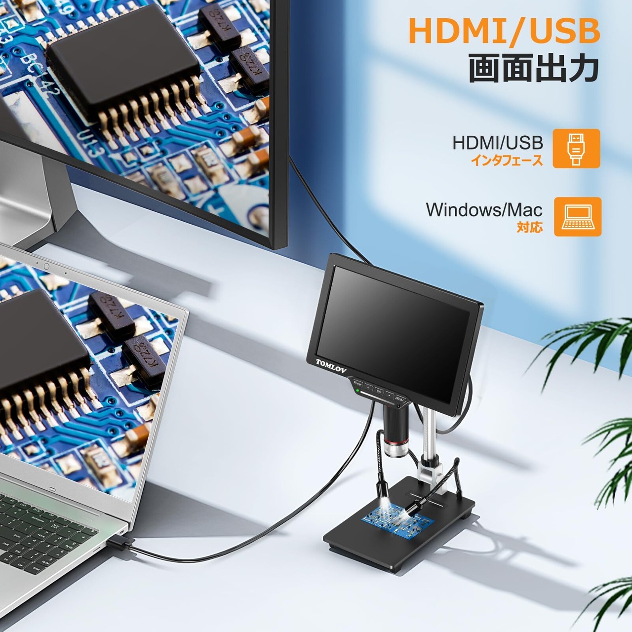 【デュアルHDMI/USB出力&大画面】Tomlov DM 201 Pro電子顕微鏡はHDMIポートを介してテレビやモニターに接続できます。より広範囲を観察することができて、データ共有や分析が容易になります。このモニター付きデジタル顕微鏡はプラグアンドプレイで、追加のソフトウェアは必要ありません。デフォルトの「Windowsカメラ」(Windows 10)と「フォトスタンド」(iMac/MacBook)を実行するだけで、他の大画面デバイスで観察の画面を表示られます。