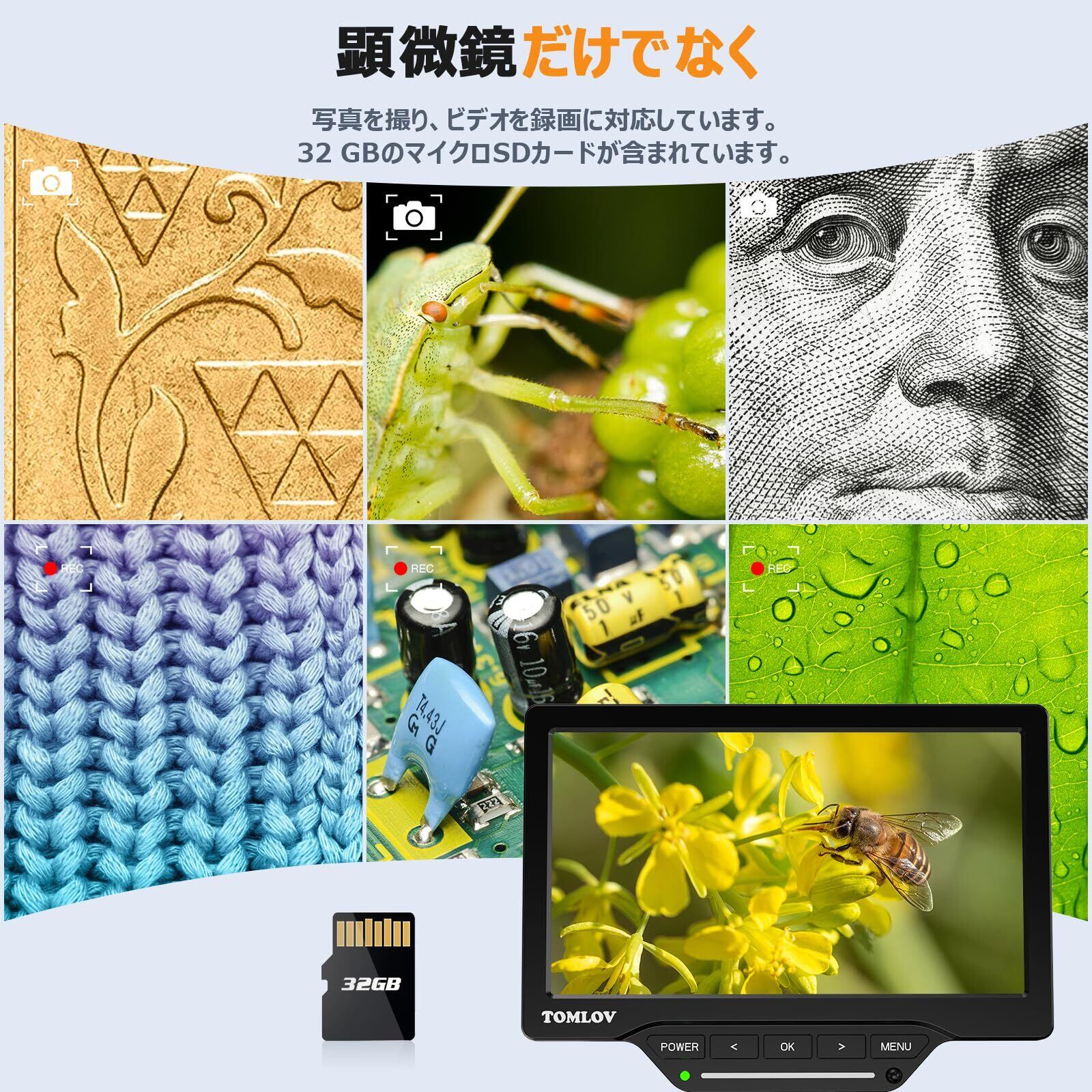 ■【話題の多用途マイクロスコープ!】本商品は回路基板修理、コイン鑑賞、生物観察など、幅広い用途でご利用いただけます。32GBのメモリーカードが付属しており、すぐに使い始めることができます。