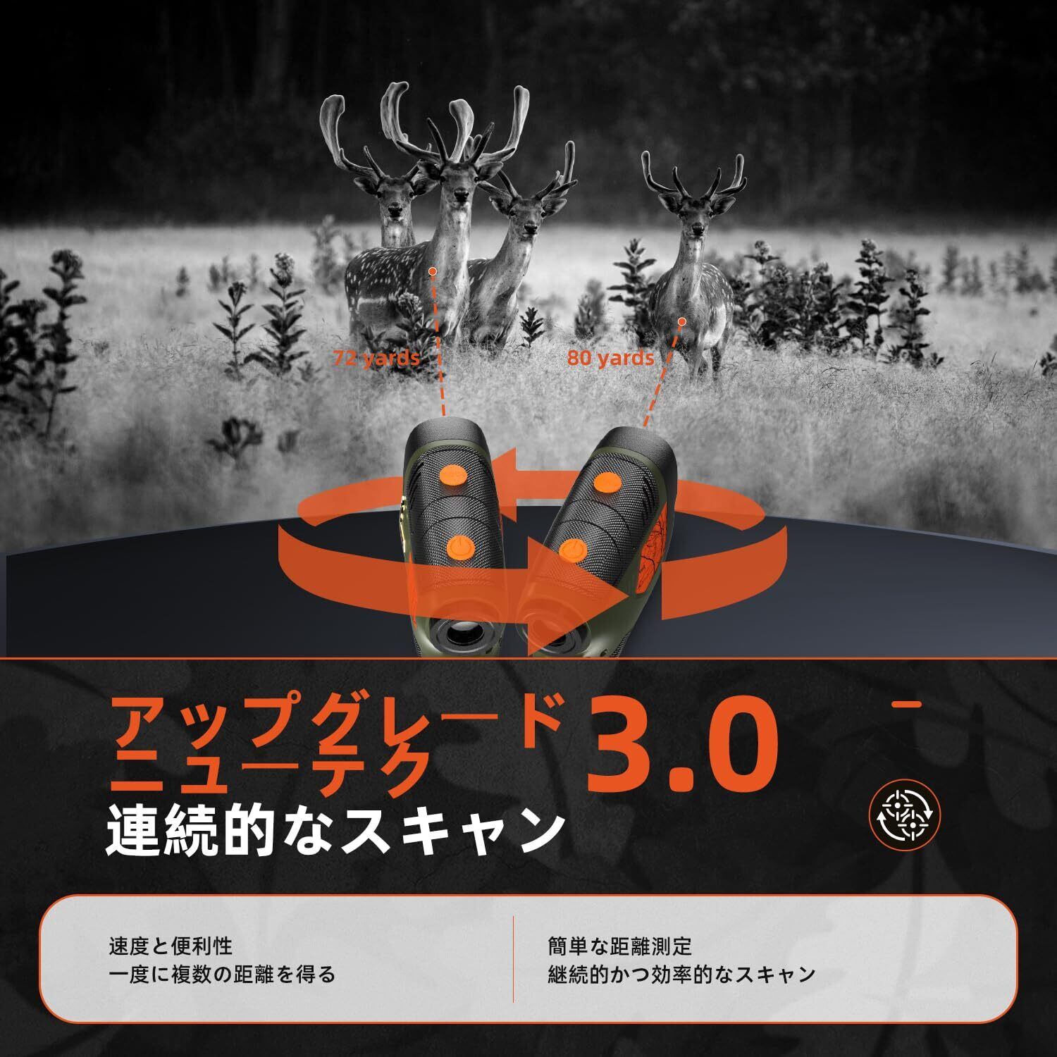 ■【充実した機能で実用性を追求!】距離測定はもちろんのこと、角度や速度も瞬時に測ることができます。連続スキャン機能を搭載しており、動きのあるターゲットにも的確に対応。狩猟やスポーツ観戦時にも非常に便利です。