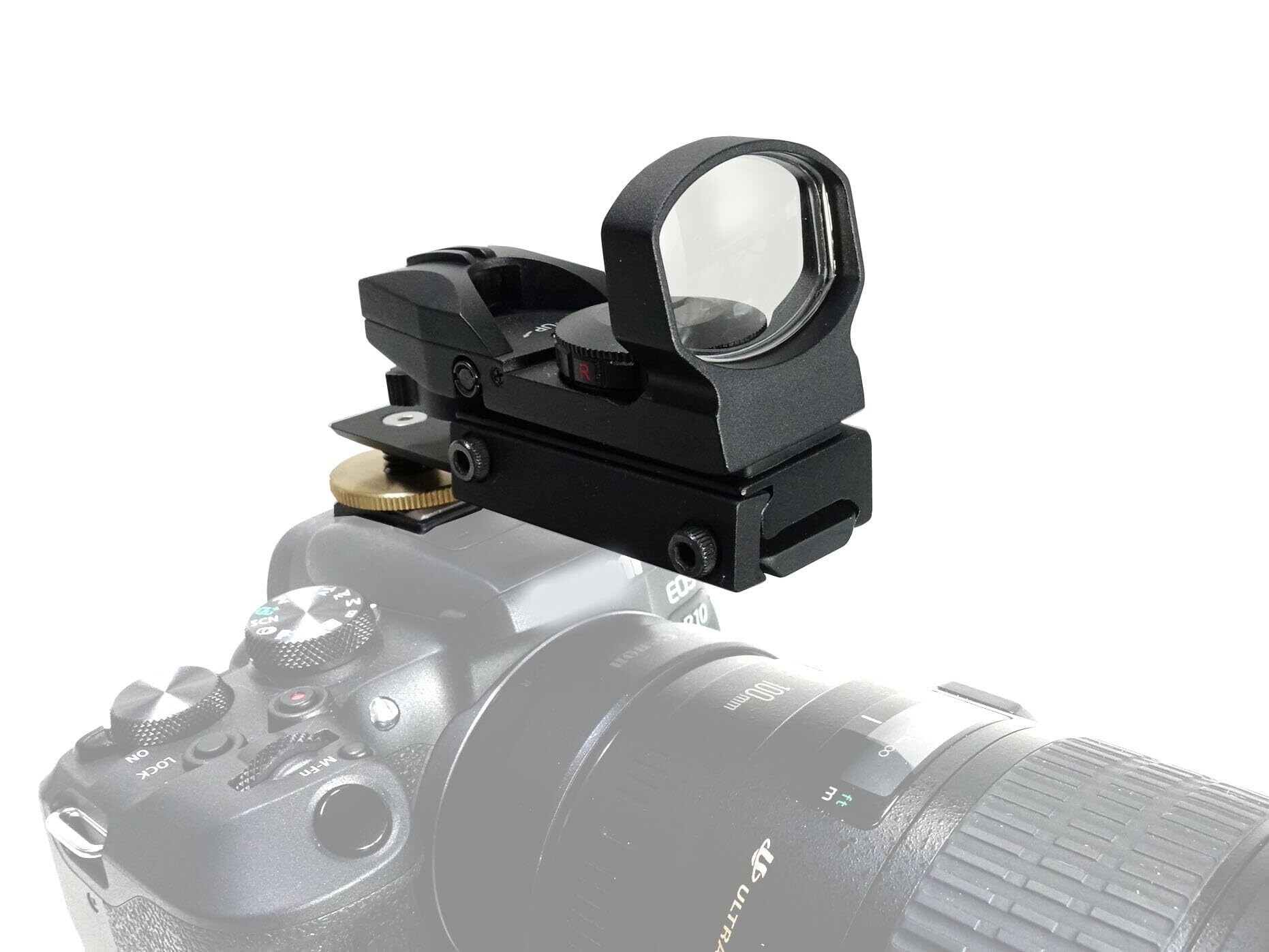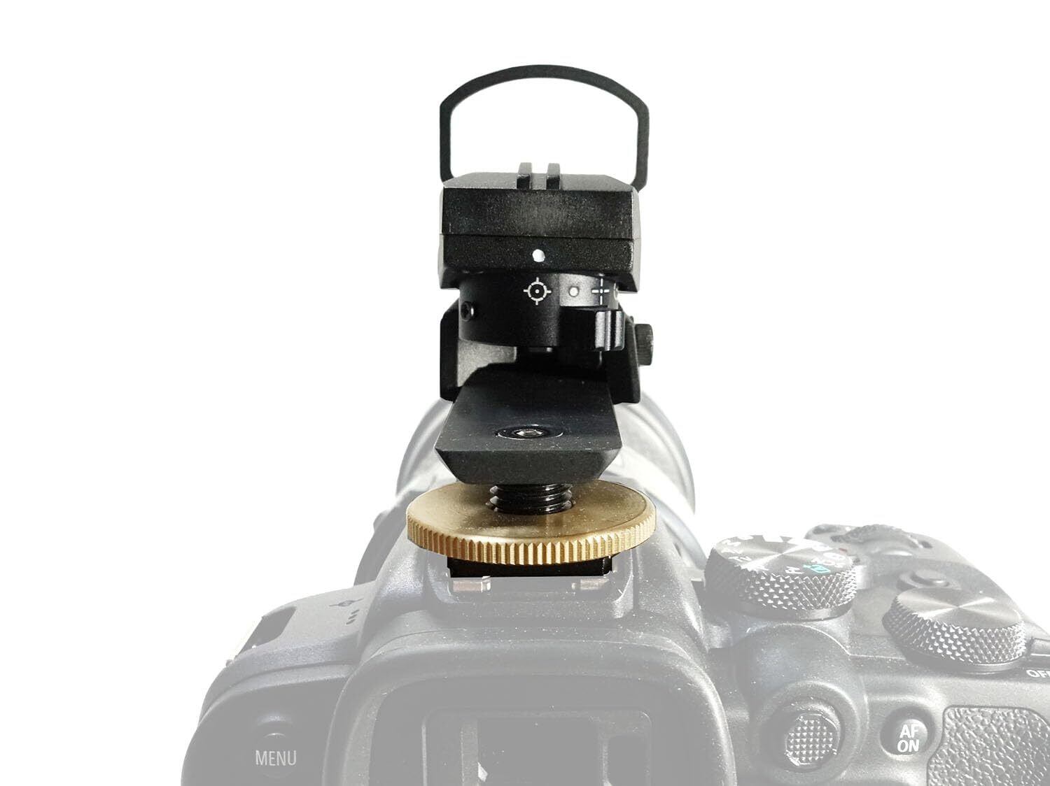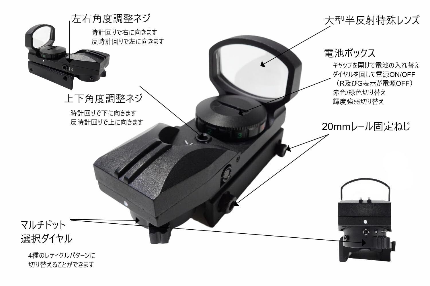 ドット形状が見やすく明るいマルチドットタイプの照準器本体をホットシューに取り付けができるようにしました。
