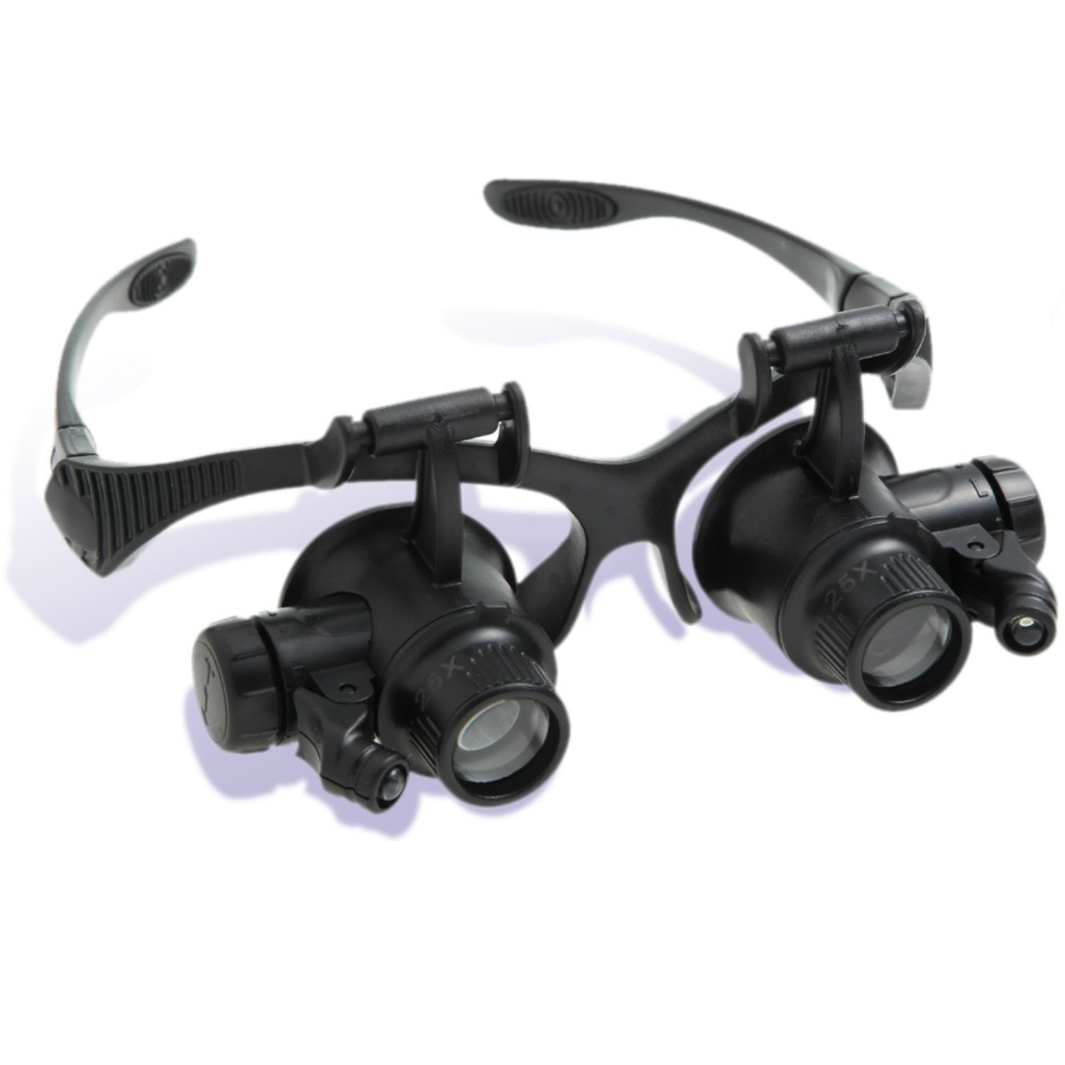 【特別価格】Phoenix メガネ型ルーペ【10倍&15倍&20倍&25倍】4種類レンズ/ハンズフリー/LEDライト2つ/ヘッドバンド付き<長期45日間>拡大鏡 ルーペ ブラック