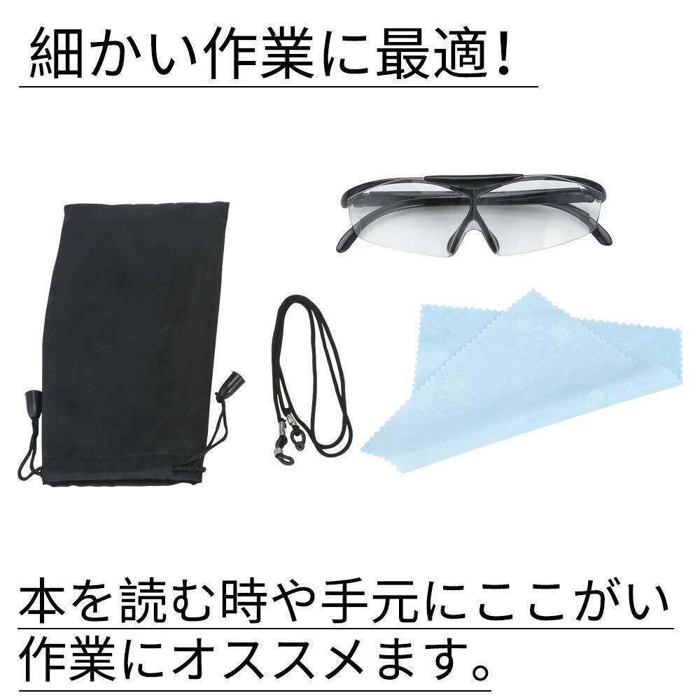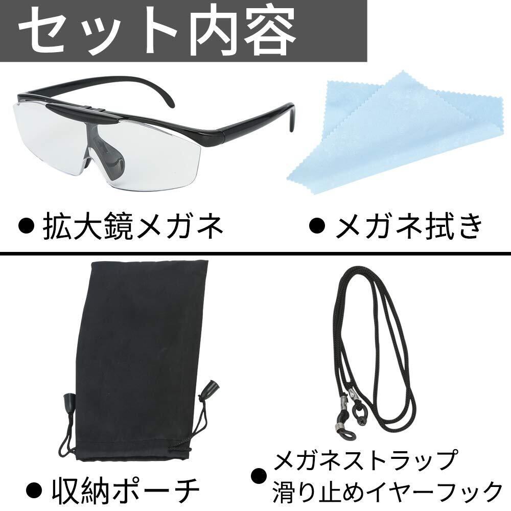 JWMY ルーペメガネ メガネ型拡大鏡 メガネの上から掛けられる はっきり見える 大きく見える レンズ跳ね上げ機能付き 両手が使えるルーペ 父の日 敬老の日 プレゼント7点セット 日本語説明書付き (ブラック)