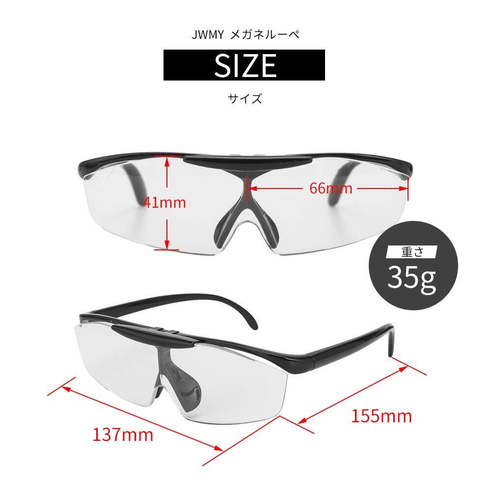 ■【メガネ型で使いやすさ抜群!】JWMY ルーペメガネは、普段のメガネの上から掛けられる便利なデザイン。両手が自由に使えるため、本や細かい作業に集中でき、作業効率が大幅に向上します!