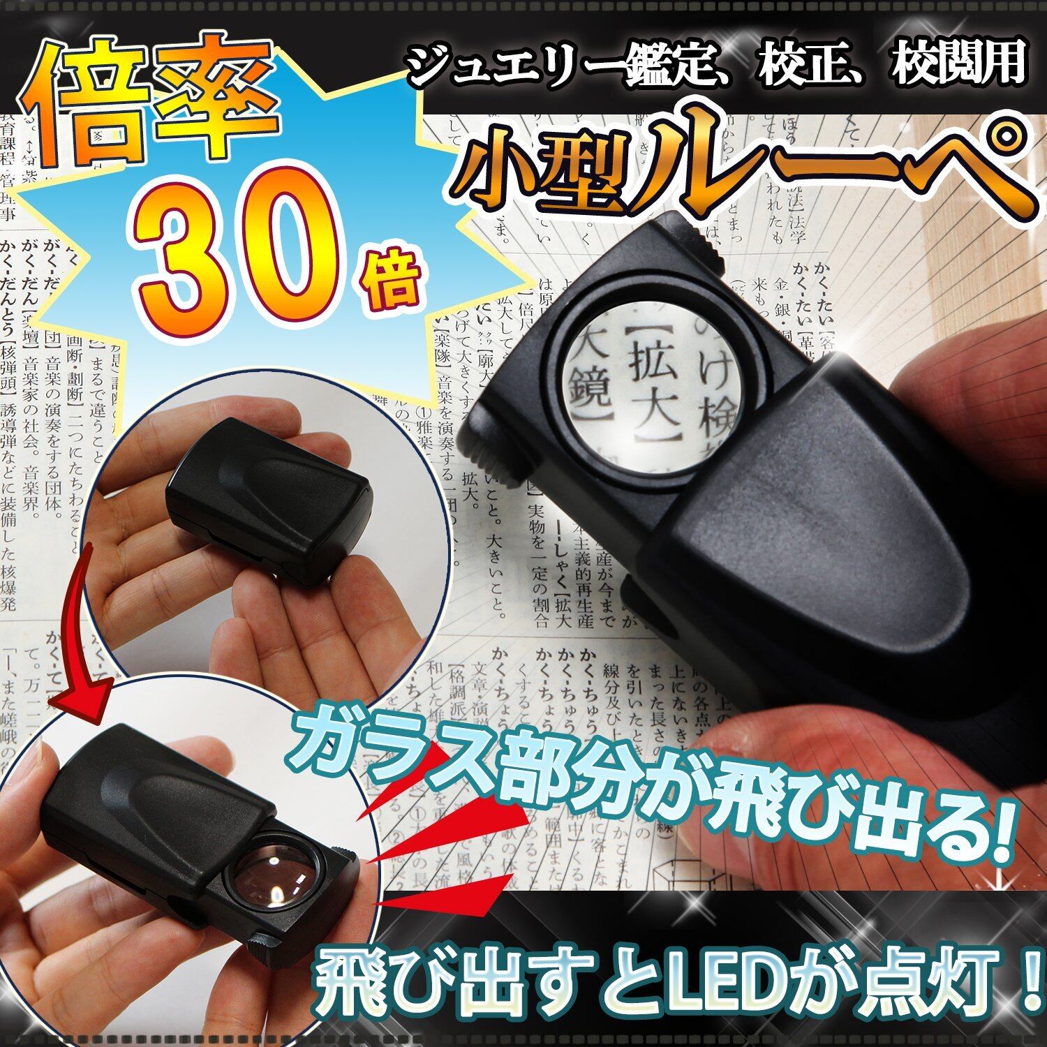 【高倍率30倍】新聞などの文字がぼやける。職業柄、細かいものを見ることが多い。通常のルーペだと陰になって暗くて見えづらい。そんな時には、引き出しタイプLEDルーペです!!高倍率なんと30倍!印刷物出版物チェック、 網点チェック、 電子基板、 紡織品、 光学パーツ表面欠陥の検査 ジュエリー襟鑑定 生物標本観察などに活躍します。