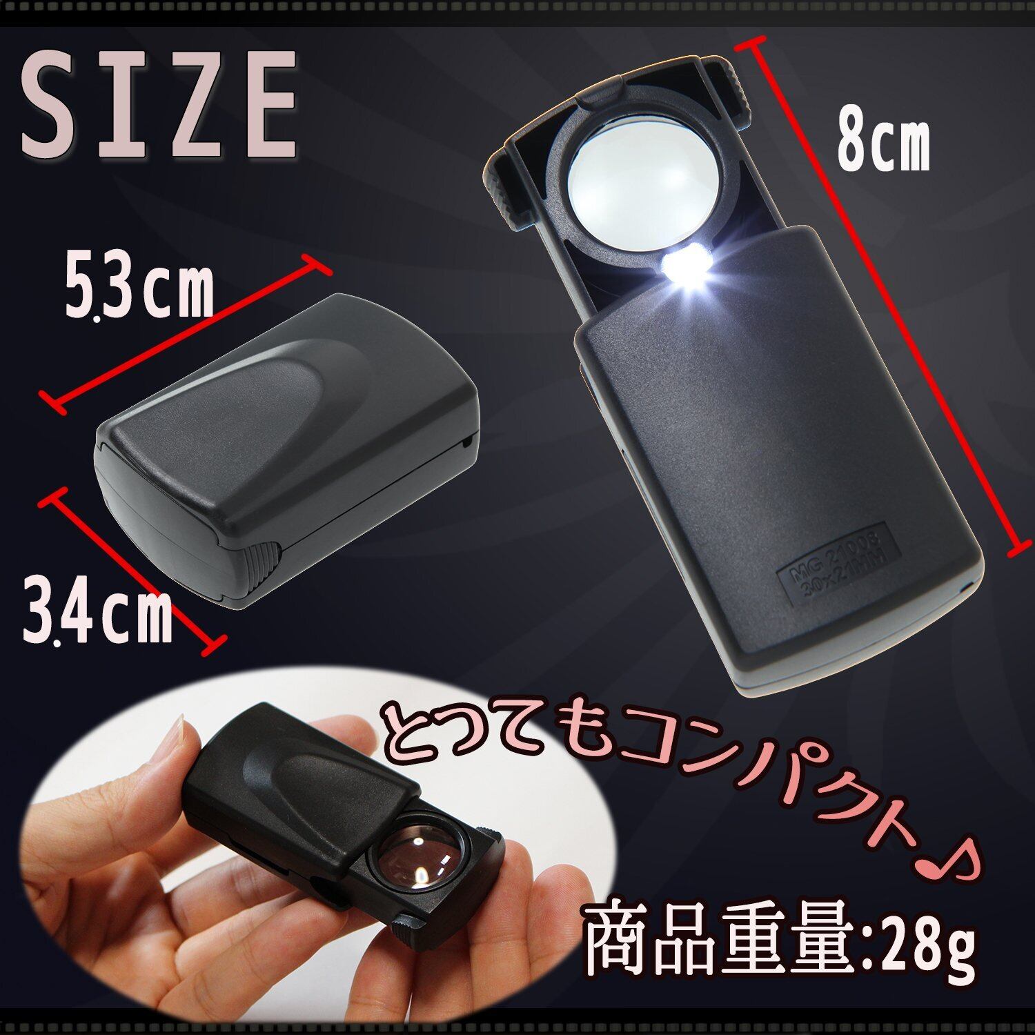 Phoenix 小型ルーペ【30倍】引き出し式/シンプル・コンパクトデザイン/LEDライト付き<長期45日間> 拡大鏡 ルーペ ブラック