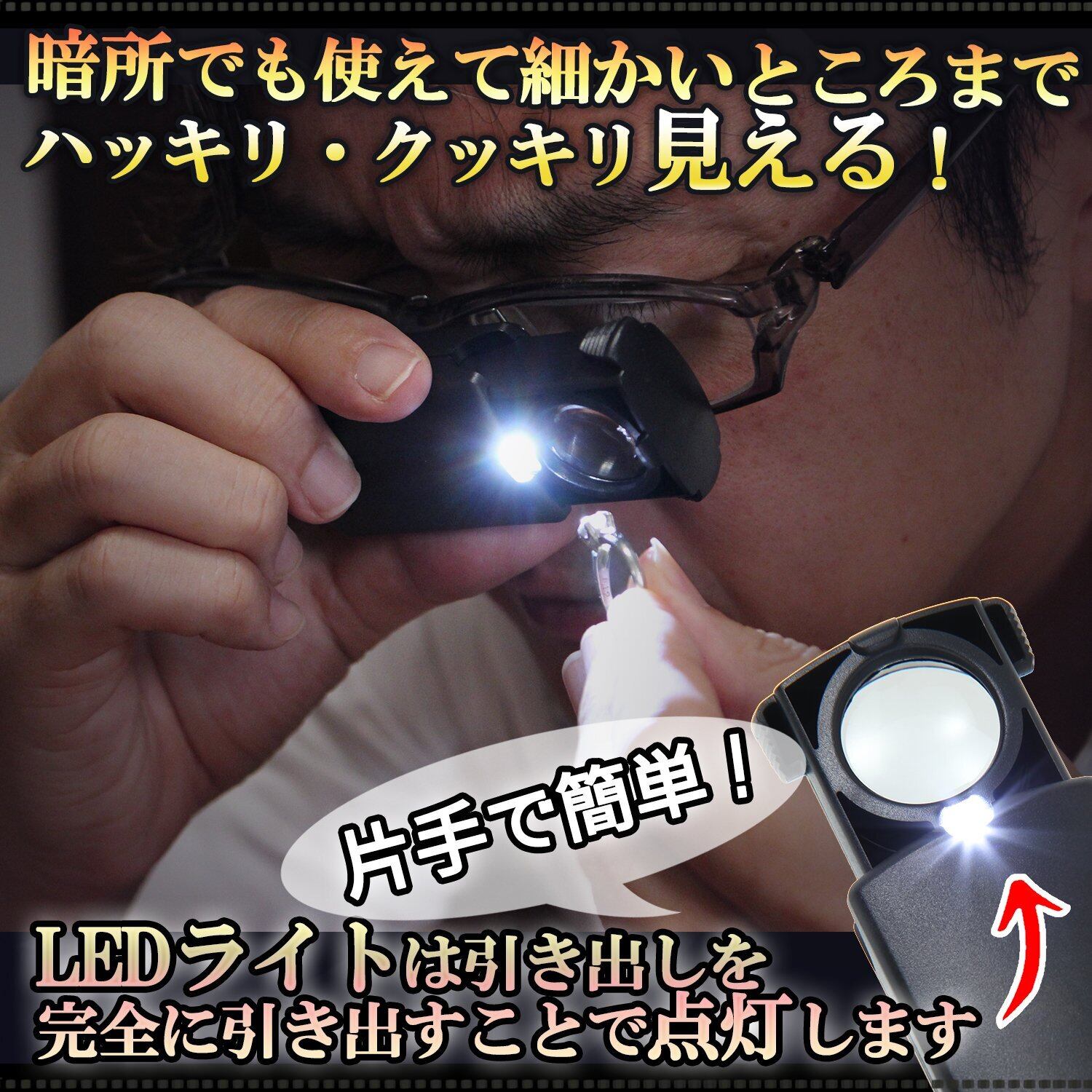 【LEDライト付き】LEDライトがついているので、暗所でも使えて細かいところまでハッキリ・クッキリ見える!LEDライトは引き出しを完全に引き出すことで点灯します。片手で簡単!観察、研究、印刷物の校正、校閲、ジュエリーの鑑定、基盤など、様々な精密作業で大活躍!肉眼では見えない箇所までハッキリ見えます!