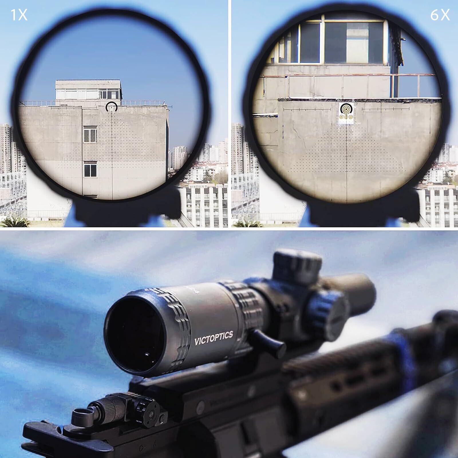 ■【優れた1-6倍の倍率と広視野!】VictOptics S6は、1-6倍の変倍が可能なライフルスコープで、幅広い射撃シチュエーションに対応。低倍率では広い視野を確保し、高倍率では正確な射撃が可能です。