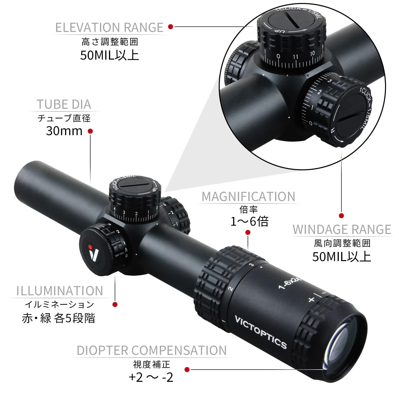 ベクターオプティクス VictOptics S6 1-6×24 LPVO ライフルスコープ [1年] MILレティクル 赤 緑 イルミネーション 耐衝撃 防水 防曇
