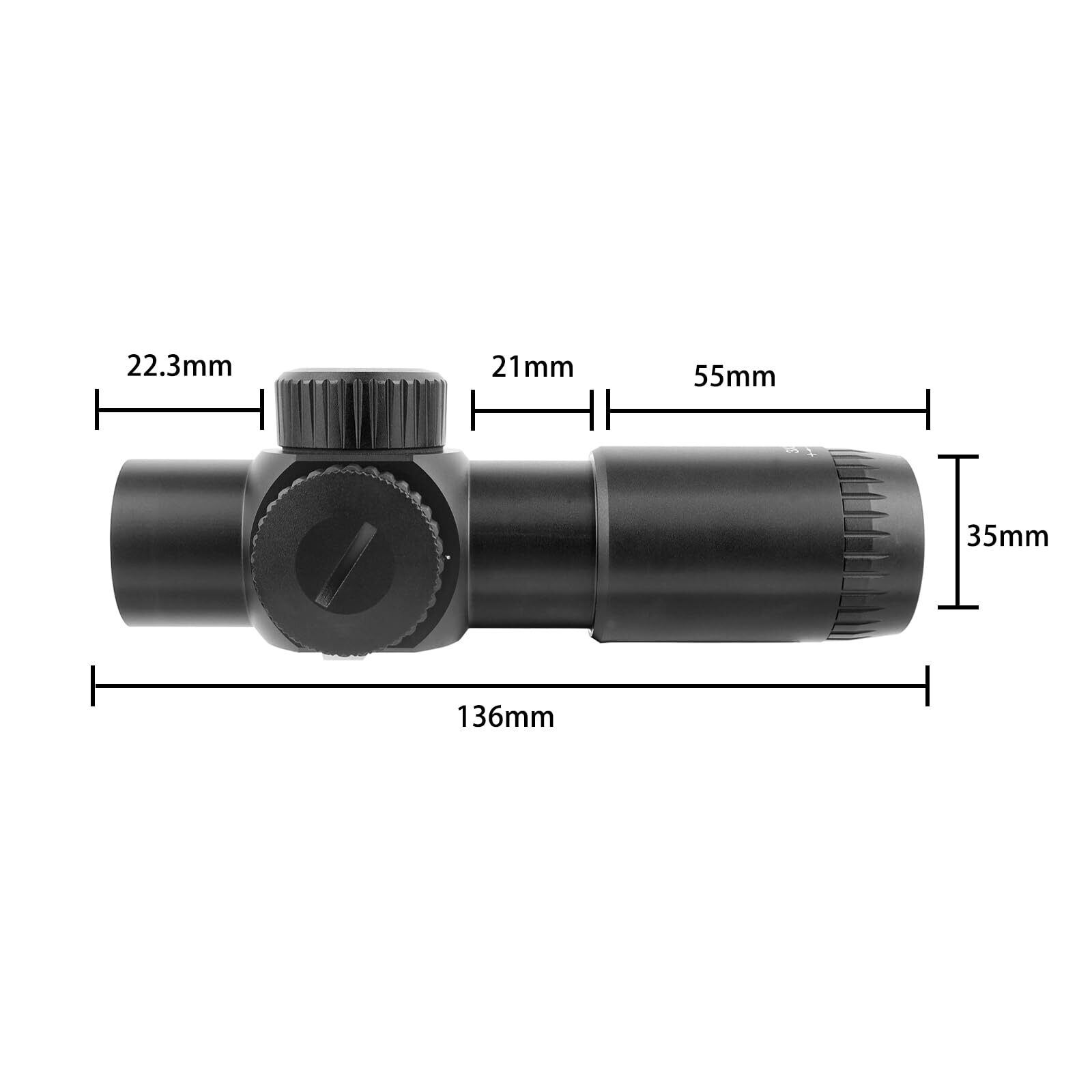 SKEERY 3x28IRライフルスコープ 3倍固定倍率照準器 コンパクトスコープ 赤、緑各5段階輝度調整可能 サバゲー用ショートスコープ 20mmレールマウント付き(BK)