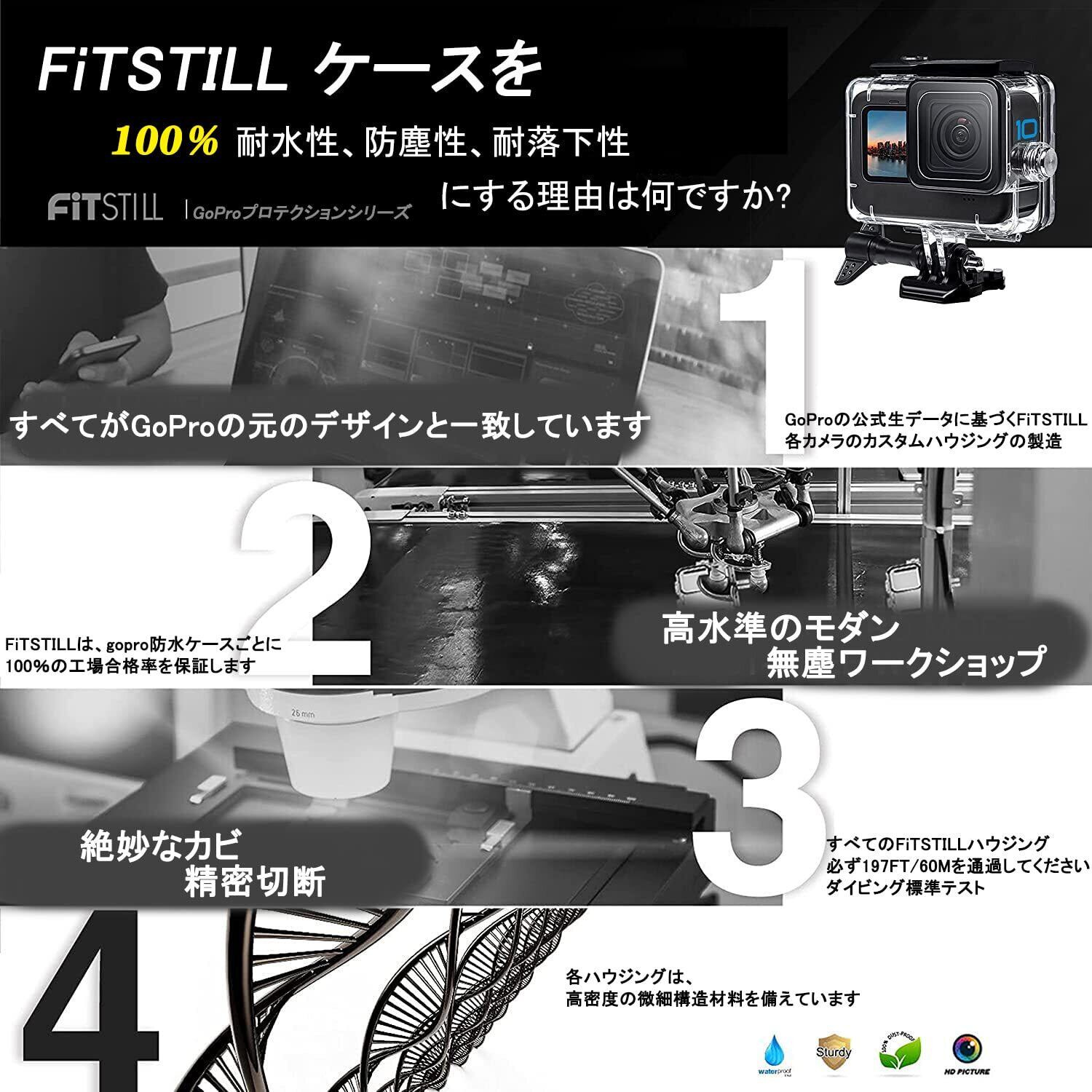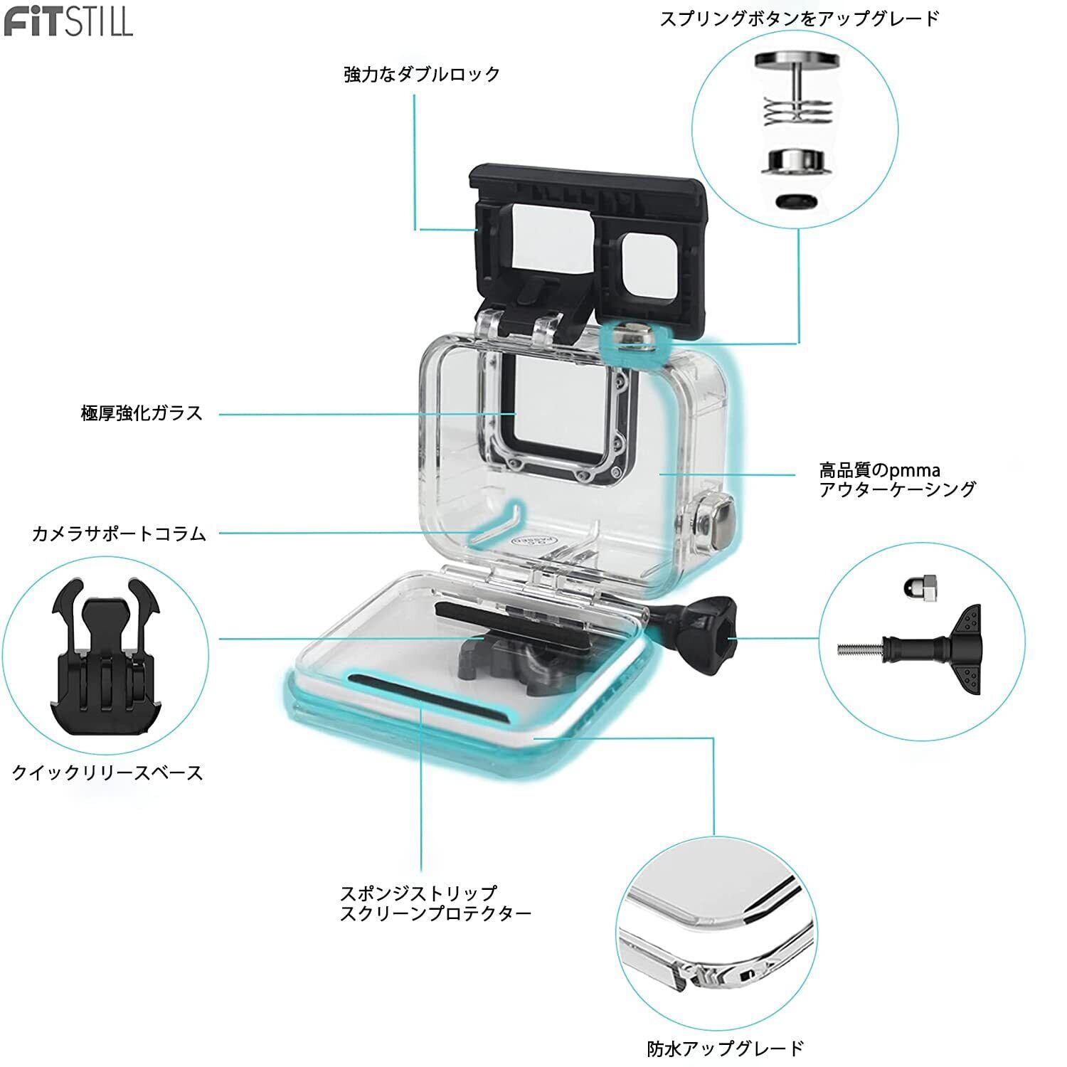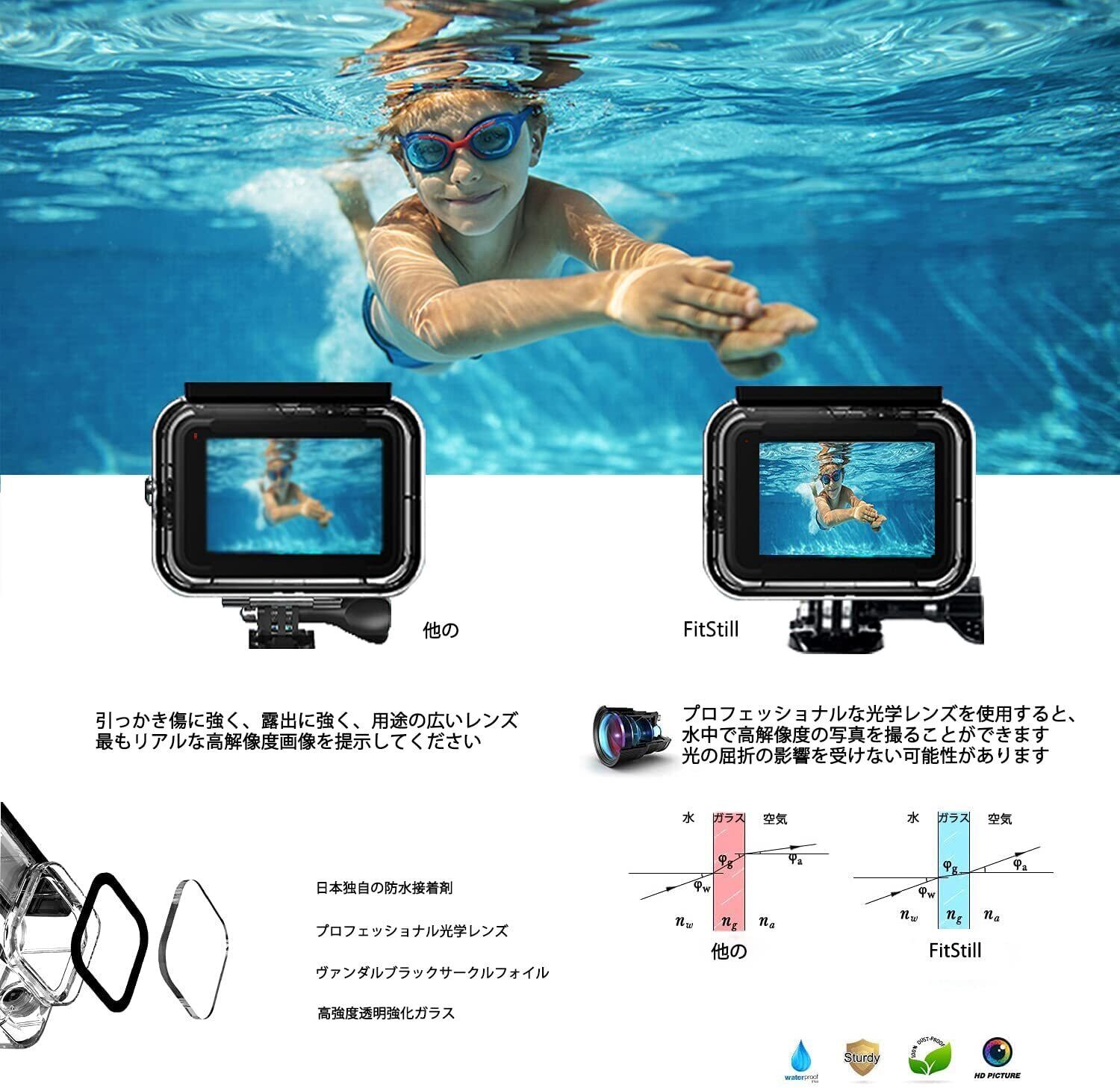 FitStill ハウジングケースGo Pro HERO 13/HERO 12/HERO 11/HERO 10 / HERO 9 Blackブラック対応 | 60m水深ダイビング| 防水防塵保護ハウジング| Go Pro Hero 13/12/11/10/9アクションカメラ対応