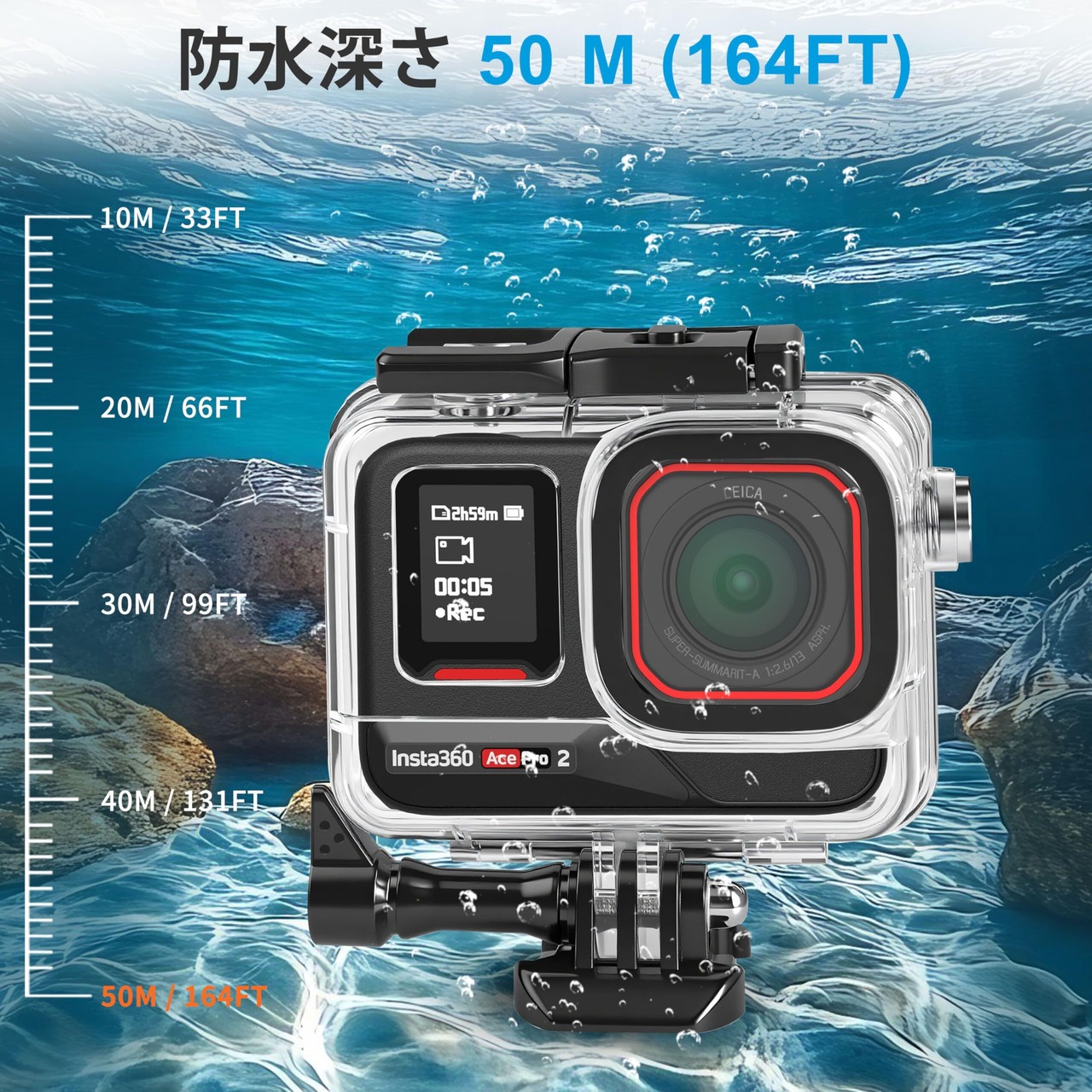 ■【優れた防水性能で安心の水中撮影!】FitStillの防水ケースは、INSTA 360 ace pro 2およびace proに特別に設計されており、最大水中深度に対応しています。ダイビング中でも安心して使用でき、素晴らしい水中の瞬間を逃しません。