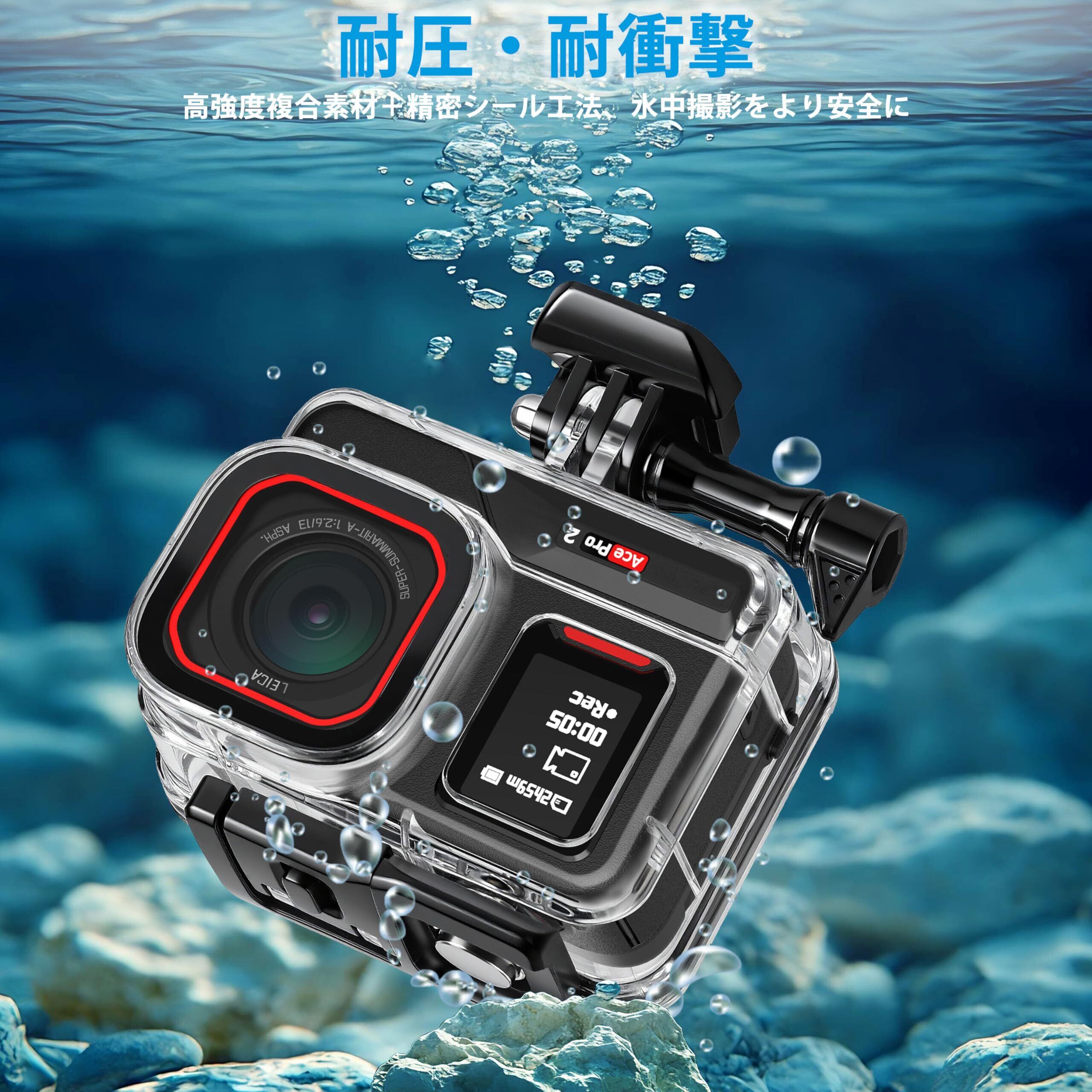 FitStill 水中防水ケースINSTA 360 ace pro 2/ace pro用防水ハウジング取付け簡単 耐圧 水中撮影用水中ダイビング保護ケース ダブルコールドシュー設計ace pro 2アクセサリー