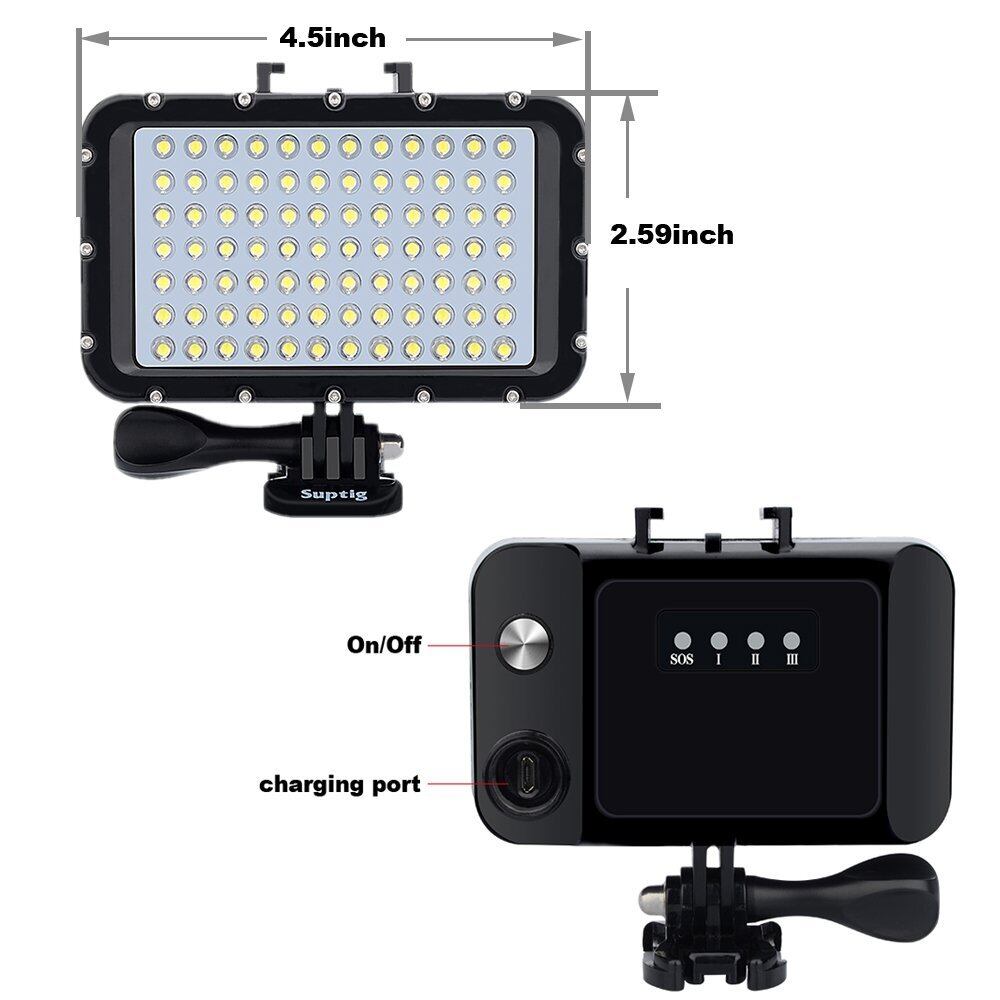 Suptig 水中ライト ダイブライト 84 LED ハイパワー 調光可能 防水 LED ビデオライト 防水 164フィート (50m) Gopro Canon Nikon Pentax Panasonic Sony Samsung SLRカメラ用 ブラック