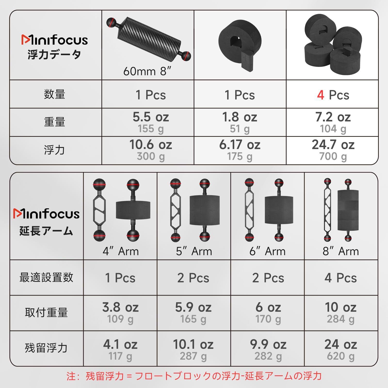 【特別価格】MINIFOCUS 4Pcs 水中カメラの浮力のフロートのキット、浮力は 175g*4