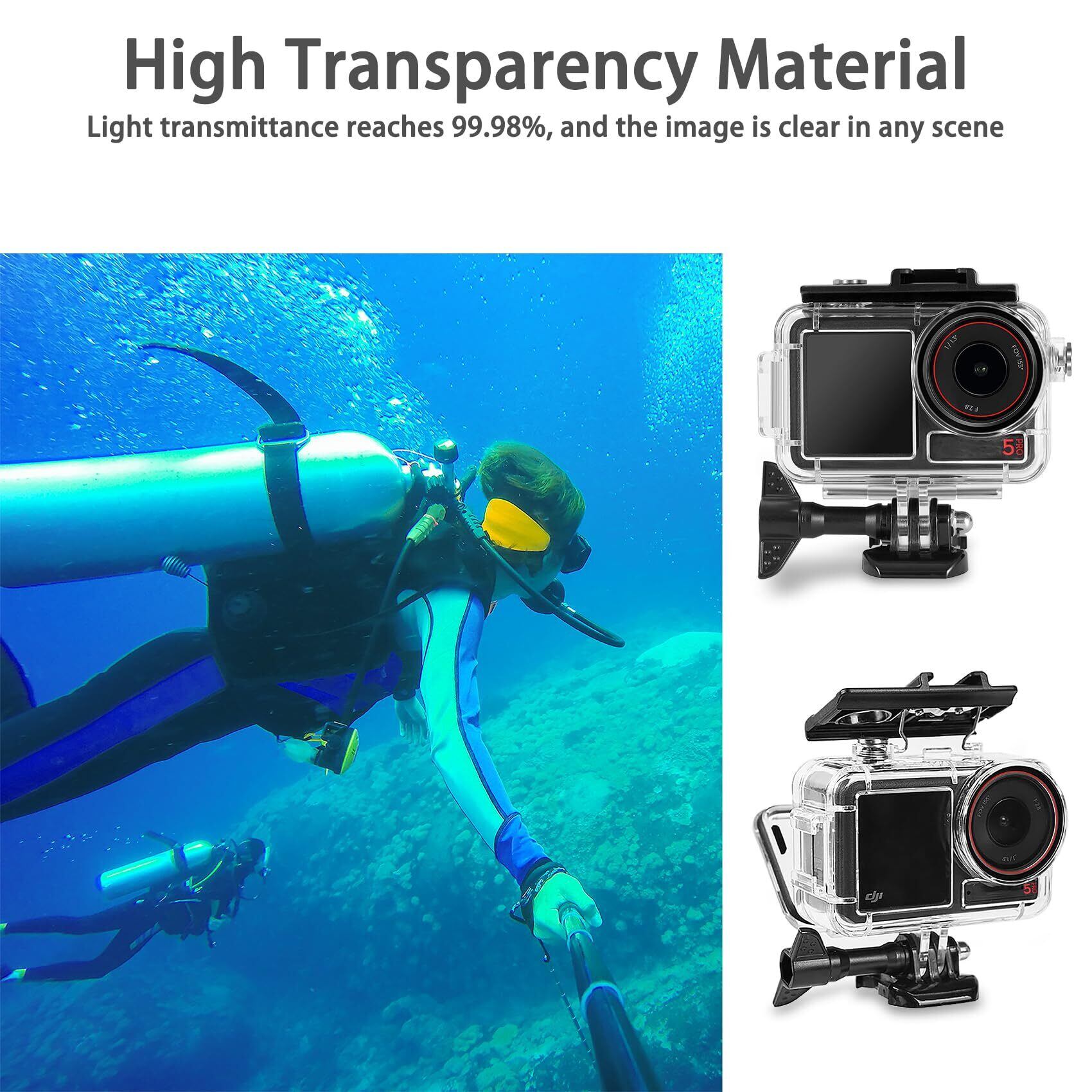 OKFUN 防水ハウジングケース DJI Action 5 pro/Action4/Action3 ダイビング保護 水中ダイビングカバー保護シェル 50M/164フィート ブラケットosmo action 5 pro/action 4/action 3アクセサリー付き