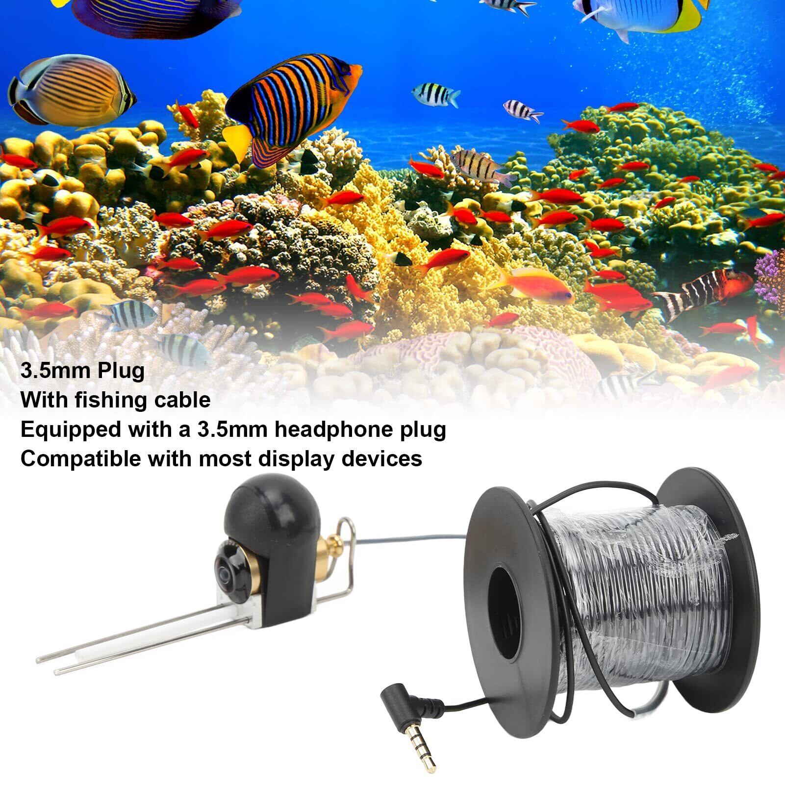 魚群探知カメラ、3.5mmプラグ安定シングル釣りカメラ195度の視野角、マリン用ケーブル付き (20m/65.6フィート)