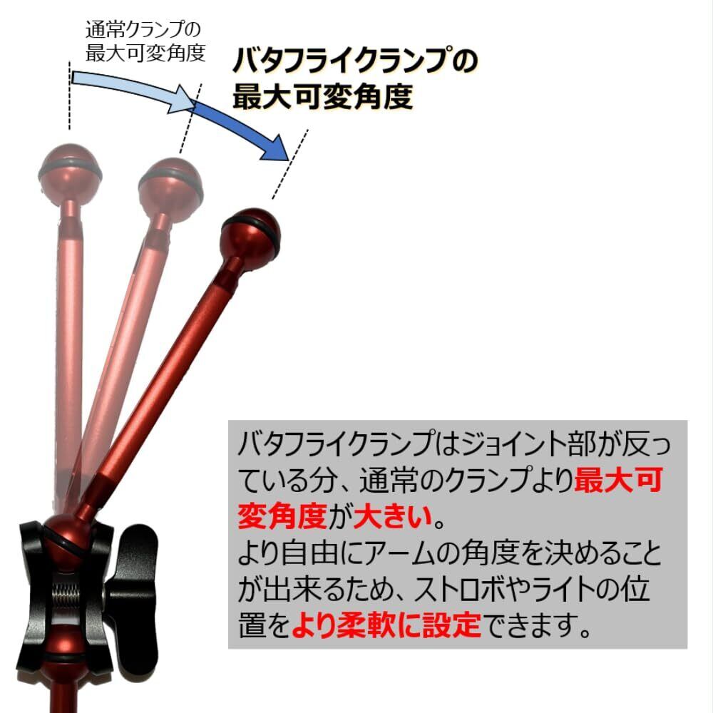 ■【水中撮影を革新する必需品!】Bamboo Dive!のバタフライクランプは、軽量でありながら高い堅牢性を兼ね備え、ボールジョイント接続により自由自在な角度調整が可能です。このクランプを用いることで、ダイビングや水中撮影時に最適なショットを確実に狙えます。