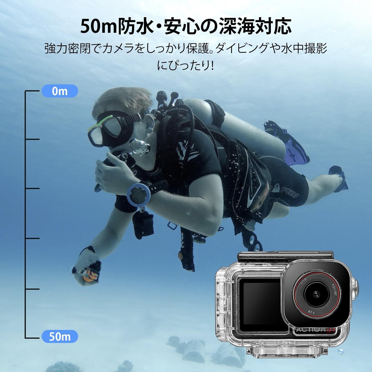 【最大水深50m対応】防水性能は最大50メートルの水深に対応。水中でも明るくクリアな映像を撮影できます。