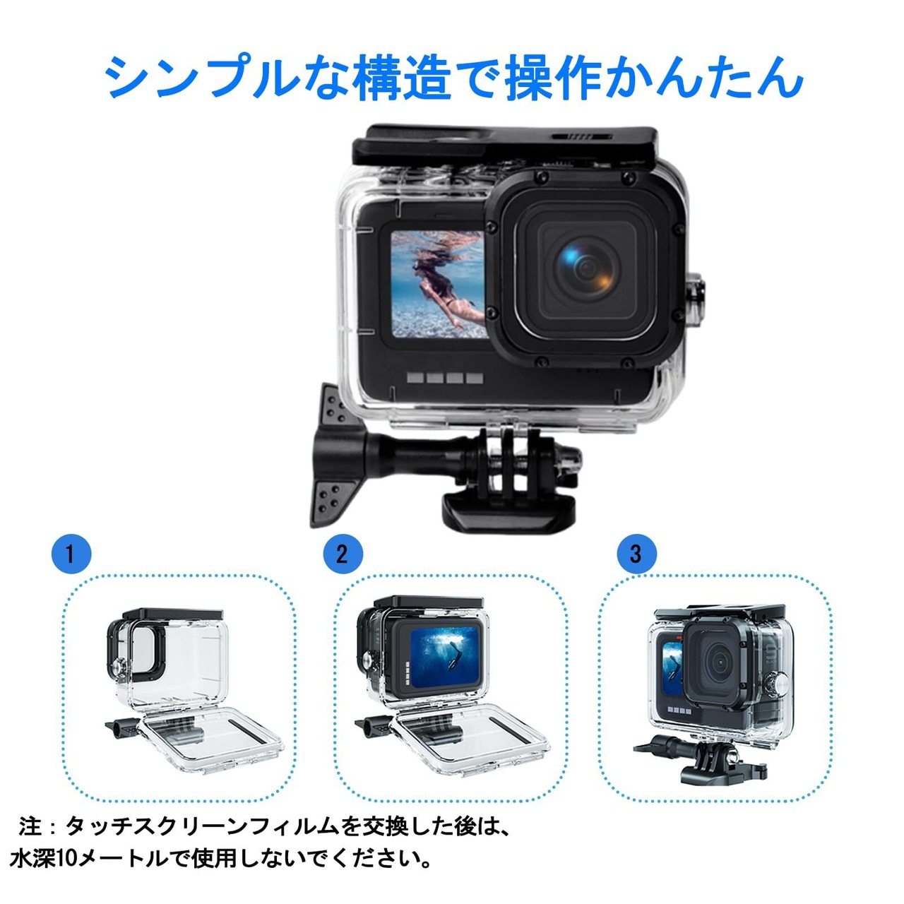 【対応機種&品質】go pro hero 13/12/11/10/9 black向けに設計され、go pro hero 13/12/11/10/9 Blackのみに対応可能で、他の機種に一切対応できません。初期不良などの問題が生じた場合では、弊店までご連絡いただきますようお願い申し上げます。至急に対応させていただきます。 注:タッチスクリーンフィルムを交換した後は、水深10メートルで使用しないでください。