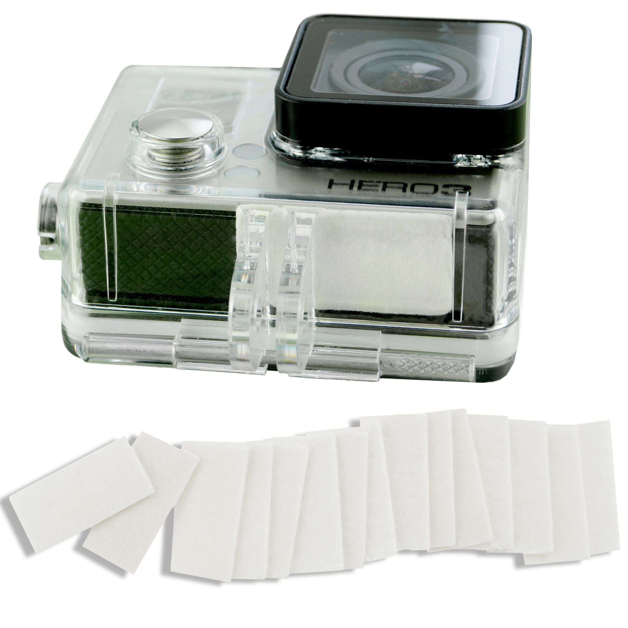 GoProハウジングの中にCamKix 曇り止めインサートを入れるだけでこの問題を防ぐことができます。高品質シリカゲルセルロース繊維で作られているこのインサートは湿気を吸収してカメラから湿気を遠ざけます。