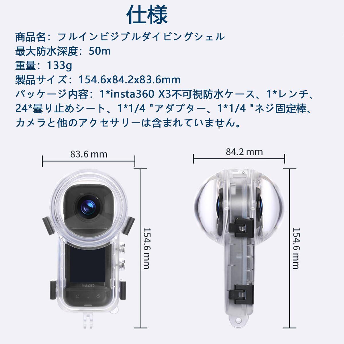 TOMGDRACO Insta360 X3 見えない潜水ケース 360度カメラ 水中ケース 防水深さ50M ブラインドゾーン排除 HD光学レンズ x3潜水ケース 水中撮影 全方位保護 耐圧性、防塵、落下防止 傷に強い 取付け簡単 ダイビング保護カバー 水中撮影用 ダイビング/シュノーケリング/水泳/サーフィン/スキー/ラフティング/スカイダイビングなど インスタ360 防水ケース x3アクセサリー