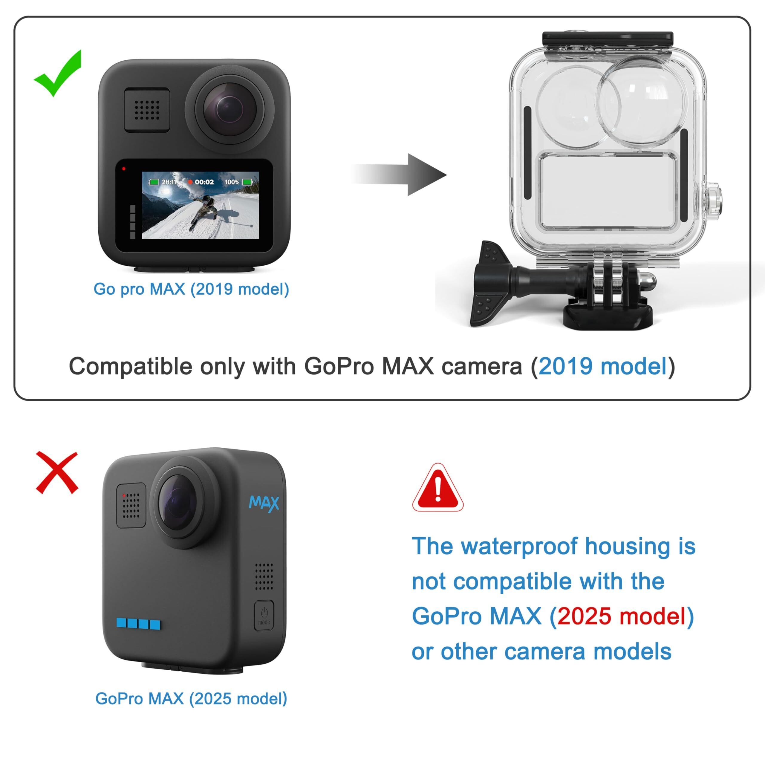 【Go Pro MAX 360 2025には対応しておりません】この防水ケースはGo Pro MAX 360 2025には対応しておりません。ご購入の際は、お使いのカメラ機種と互換性があるかご注意ください。