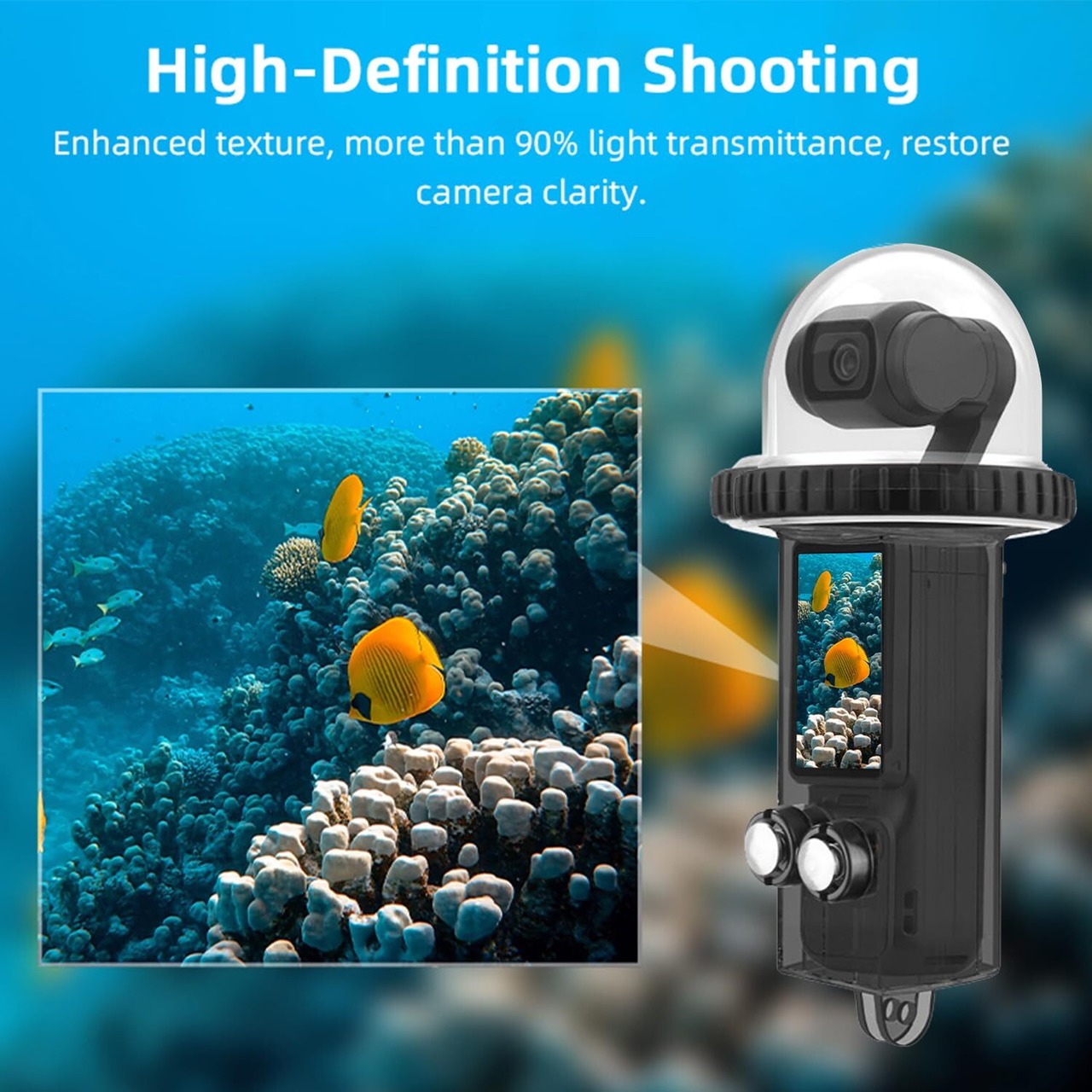 高品質で透明度の高いPC素材を採用し、耐圧防爆に優れ、撮影画像は鮮明で、レンズの表面は滑らかで平らで、画質はクリアで明るい。