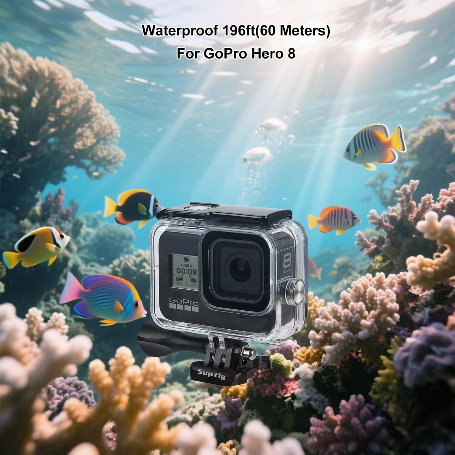 Suptig 防水ケース 保護ハウジング 互換性があります For GoPro Hero 8対応 ブラック 防水 235フィート (60メートル)