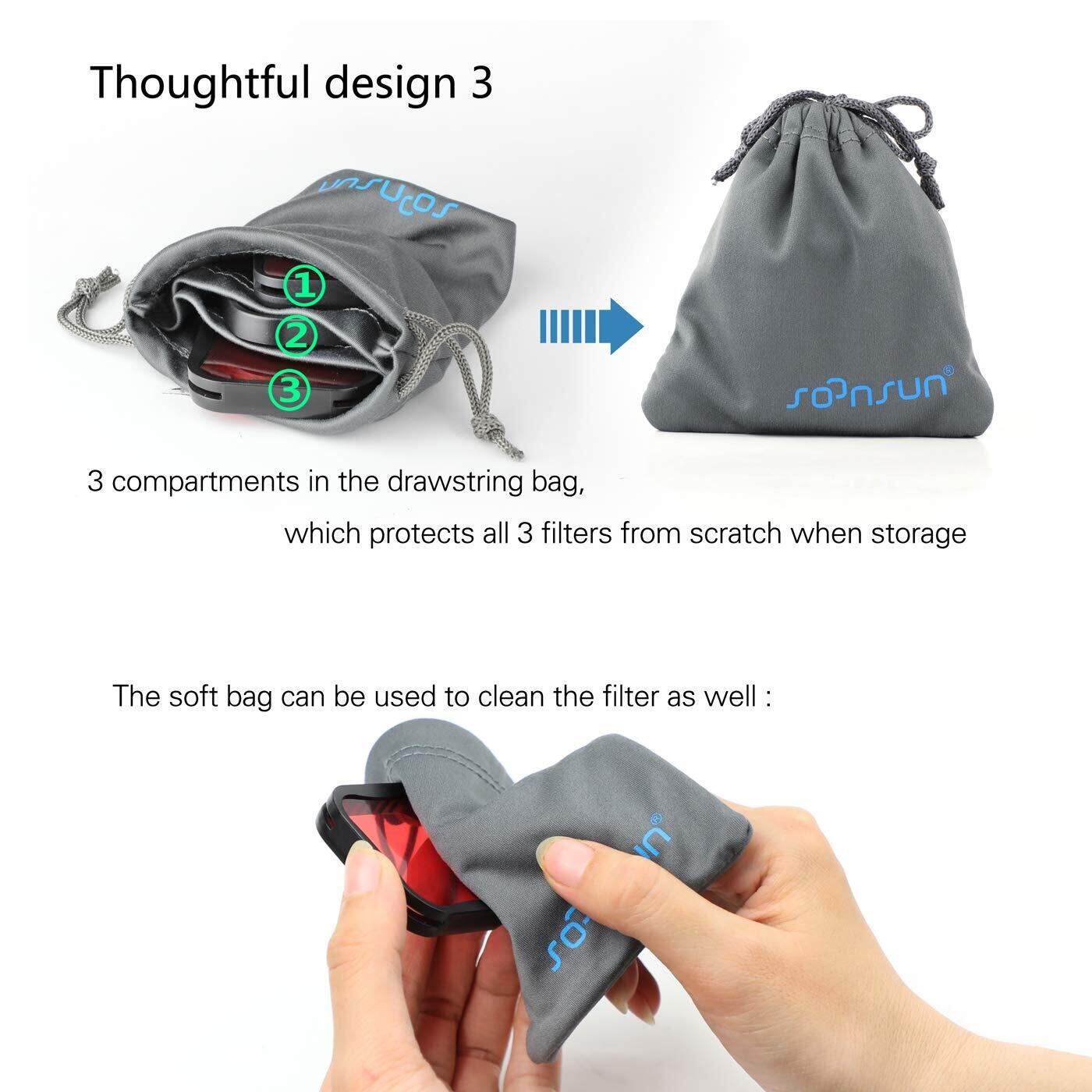 SOONSUN 3パック ダイブ フィルター GoPro Hero 5 6 7ブラック スーパースーツ ダイブ ハウジング 用 赤、薄赤、マゼンタのフィルター 様々な水中ビデオと写真の条件のために色を強調する