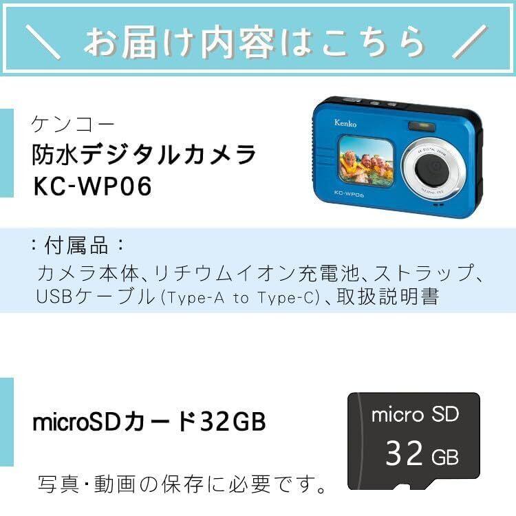 【限定セール】ケンコー 防水デジタルカメラ KC-WP06 ブルー & microSDHCカード32GB セット