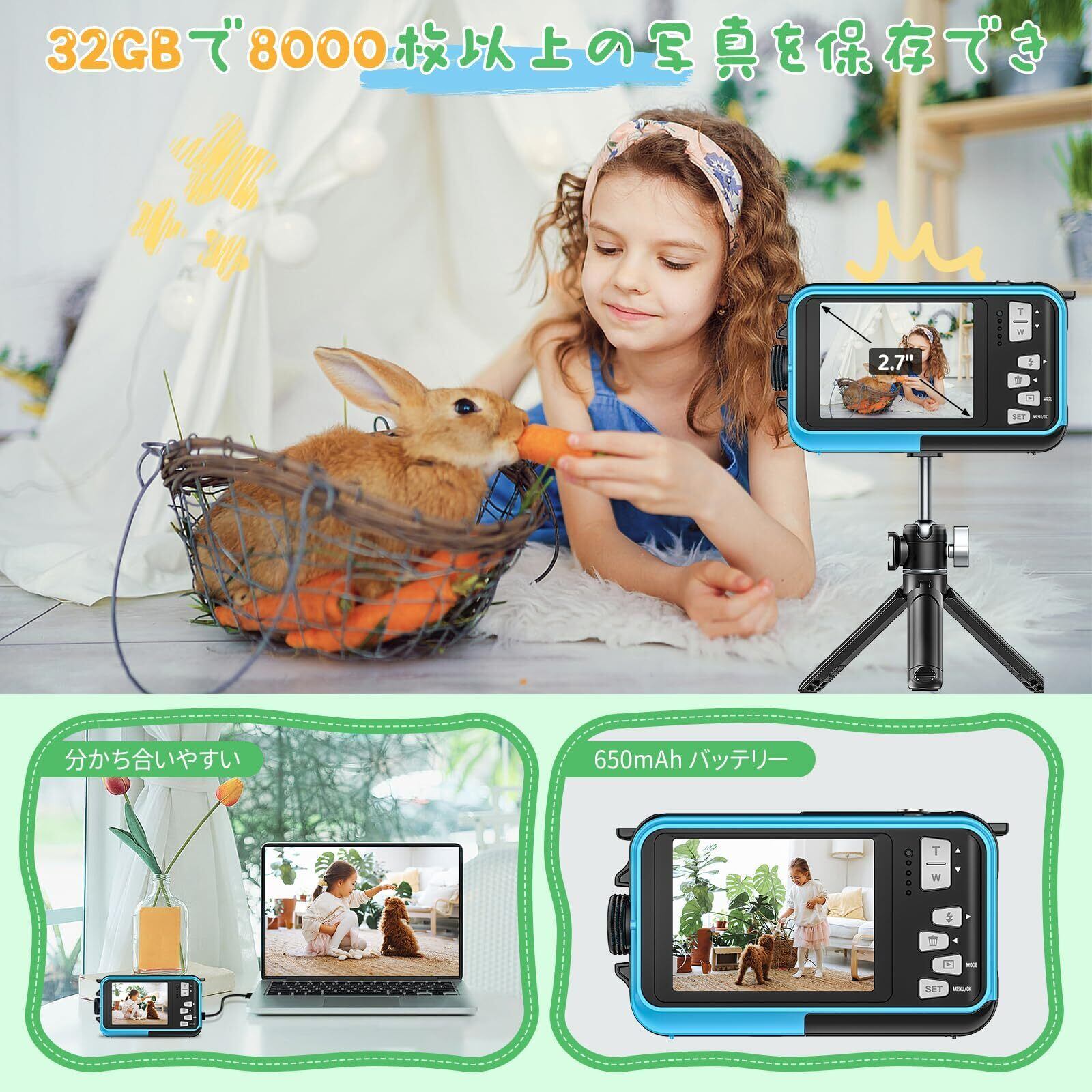 高性能防水カメラ:このデジタルカメラは3m防水で、ウォーターアクティビティに最適です。大容量バッテリーを搭載し、30メガピクセルのHD写真に対応し、1080pのフルHDビデオを最大1時間連続録画できます。バッテリーは密閉式で、完全防水・防漏仕様。湿度の高い環境でも安定して動作し、瞬間を簡単に撮影できます。