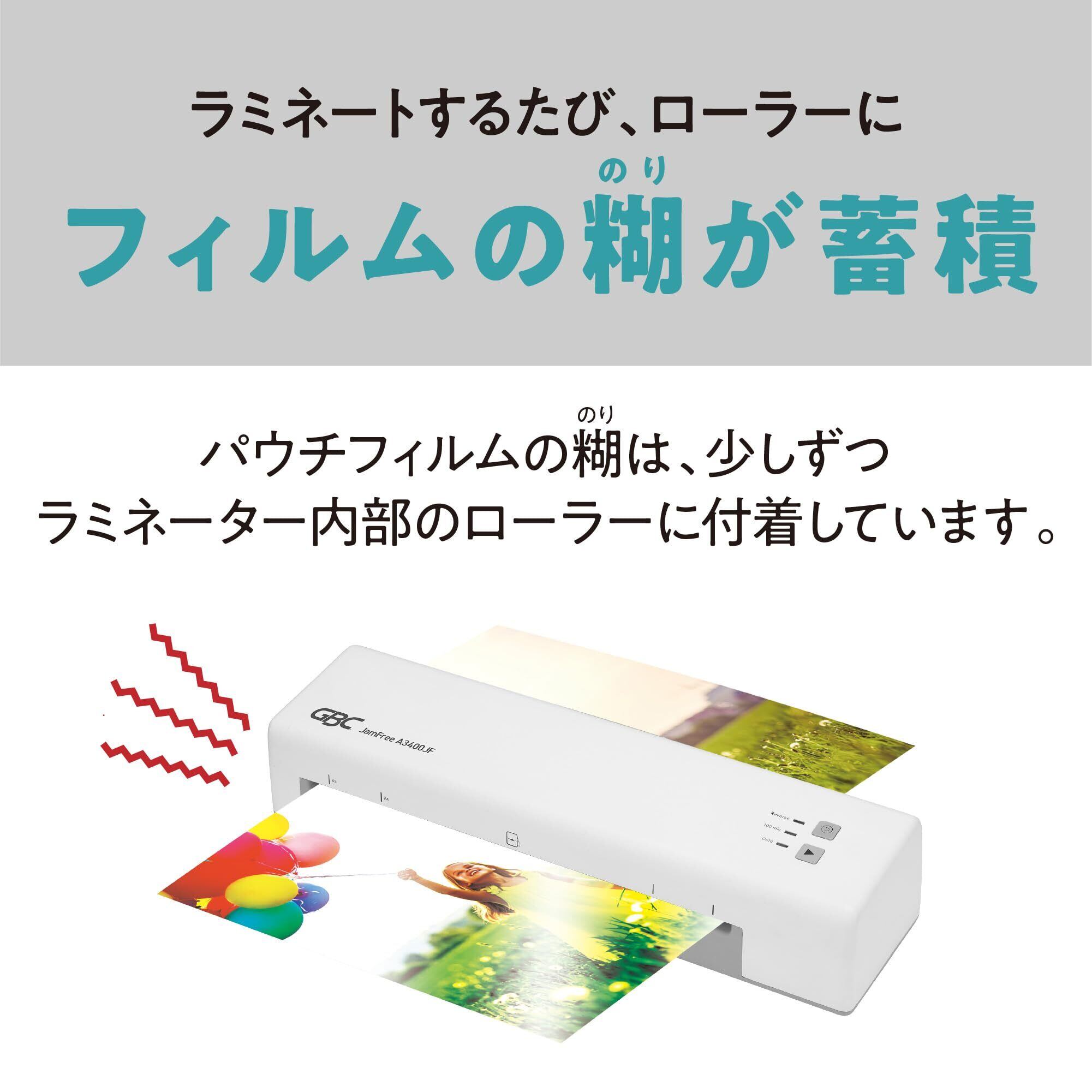 ラミネーター使用中にフィルムからはみ出た糊や汚れをしっかり取り除き、機械内部のジャミングを防ぎます。