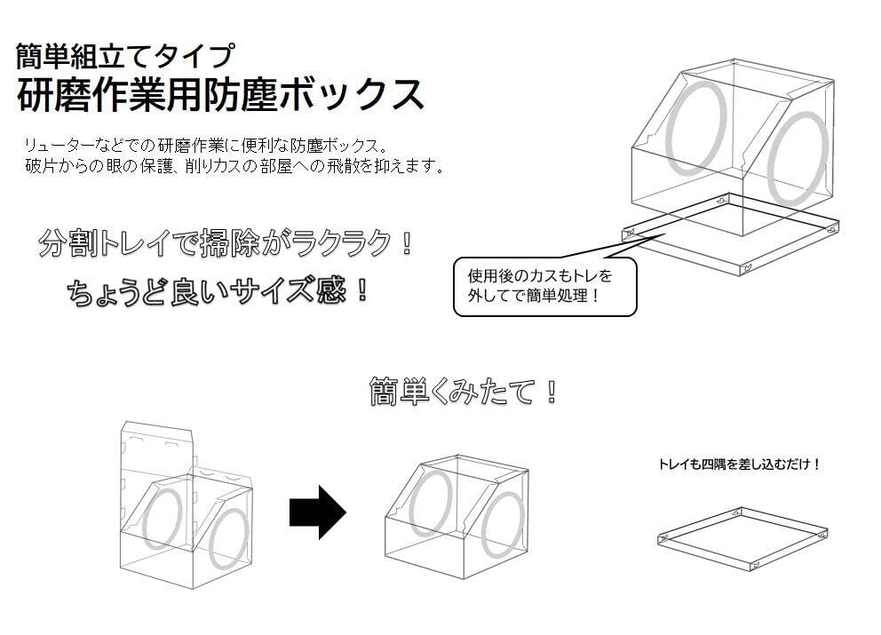 簡単に組み立てられるコンパクトサイズの防塵ボックスです。