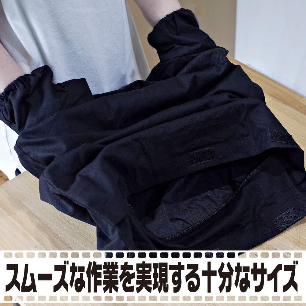 ・袖口から手を通し、袋の中で作業を行うことができます。腕を入れる袖口部分にはゴムが入っており、外からの光をシャットアウト。カメラやフィルムを出し入れできる開口部にはファスナーとベルクロテープが付いているので、光を完全遮断します。