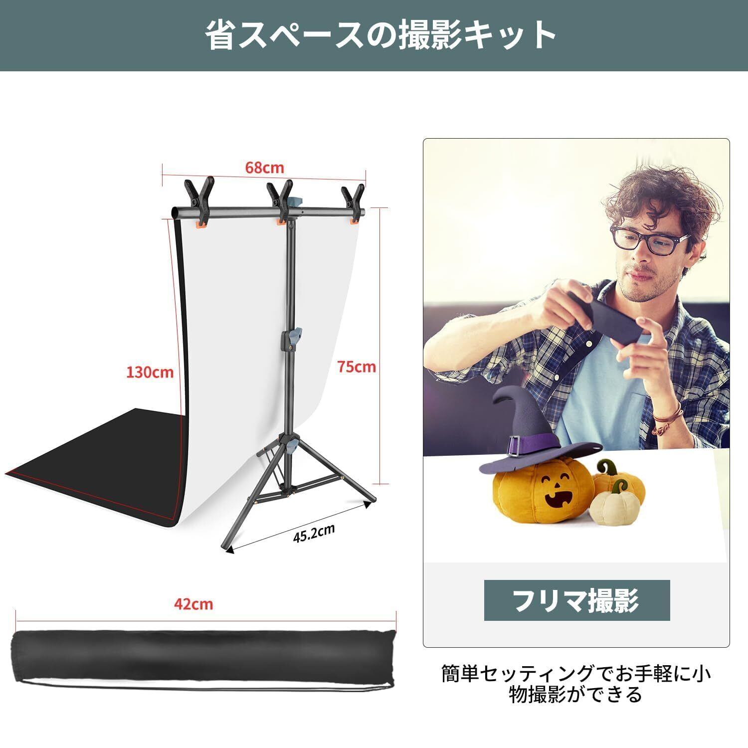 【幅広い用途】本白布と黒布背景スタンドは製品、小物、美食、ジュエリー、おもちゃ、アクセサリーなどの撮影に大活躍です。ヤフオクやメルカリの出品商品の写真を撮る時にオススメします。パッケージ内容:ライトスタンドx1、クロスバーx2、強力クリップx3、背景スタンド用の収納袋x1、背景布黒x1、背景布白x1。