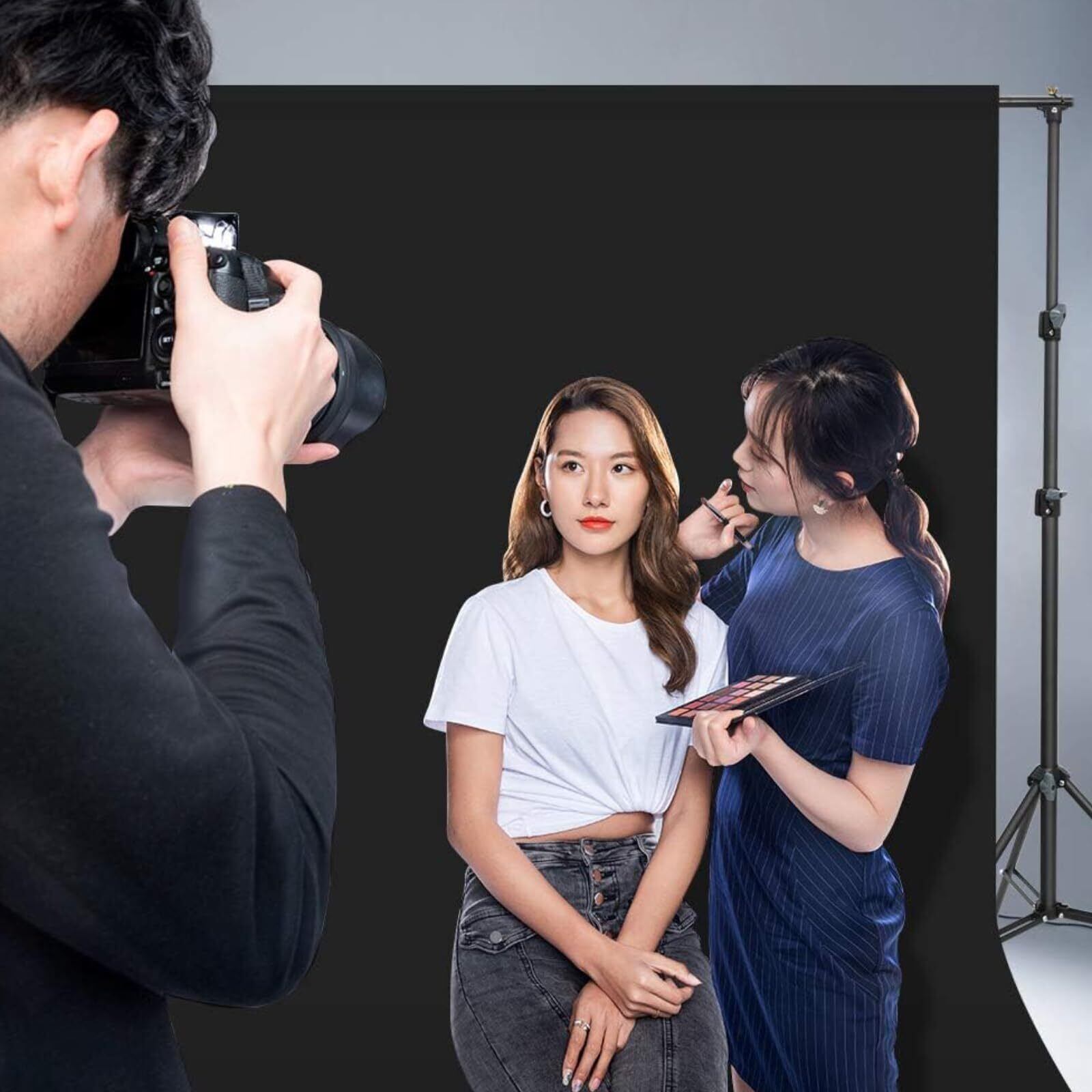 UTEBIT 背景布 黒 100 x 150 cm 撮影用背景シート 折りたたみ 遮光 布 無地 布チェーン 背景 スタンド ポール対応 バックスクリーン 暗幕 遮光 厚地 写真撮影/ビデオ/テレビに対応 ポリエステル ブラック 撮影用背景シート サイズ1m x 1.5m 均一 生地 低温アイロンでシワを取れる