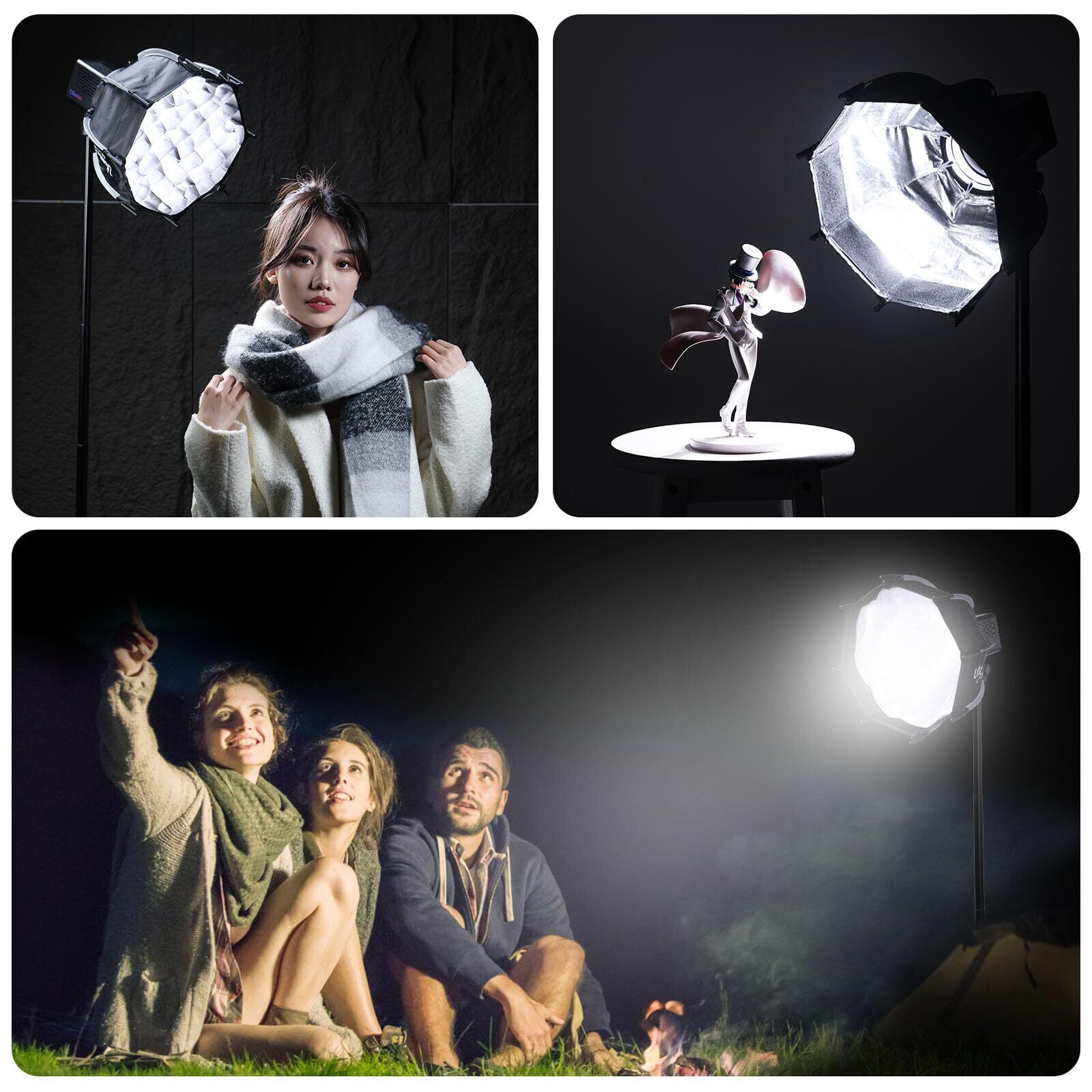 【八角形ソフトボックス】この30cmの必須の八角形ソフトボックスを使用して、ポートレート、結婚式、ファッション写真、ビデオ録画、ライブ ストリーミング、インタビューを次のレベルに引き上げます。本来の色を維持しながら光源を強化します。まぶしさを和らげ、影を取り除く二つディフューザーとメッシュが含まれています。軽量 (500g)折りたたみ式、屋外への持ち運びが簡単です。*Ulanzi 40w cob/60wライト専用。