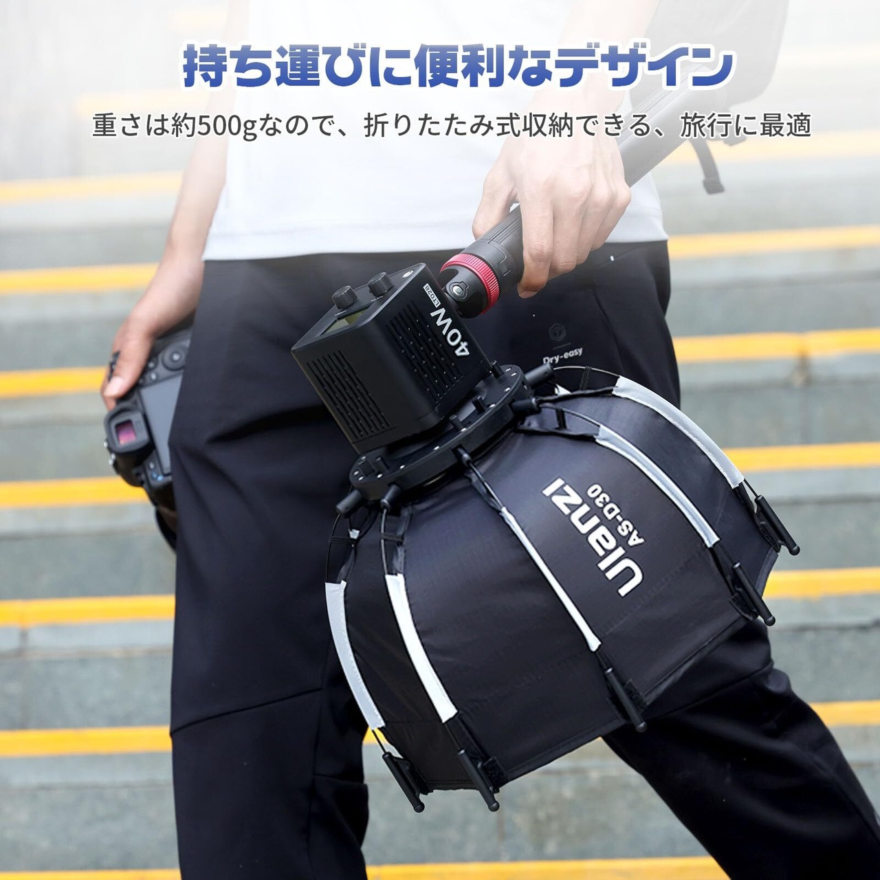 ■【高い適応性!】Ulanzi AS-D30は、Ulanzi 40wCOB/60Wライトに対応しており、さまざまな照明機材と組み合わせて使用できます。スタジオ撮影から出張撮影まで、このソフトボックスがあれば安心です。