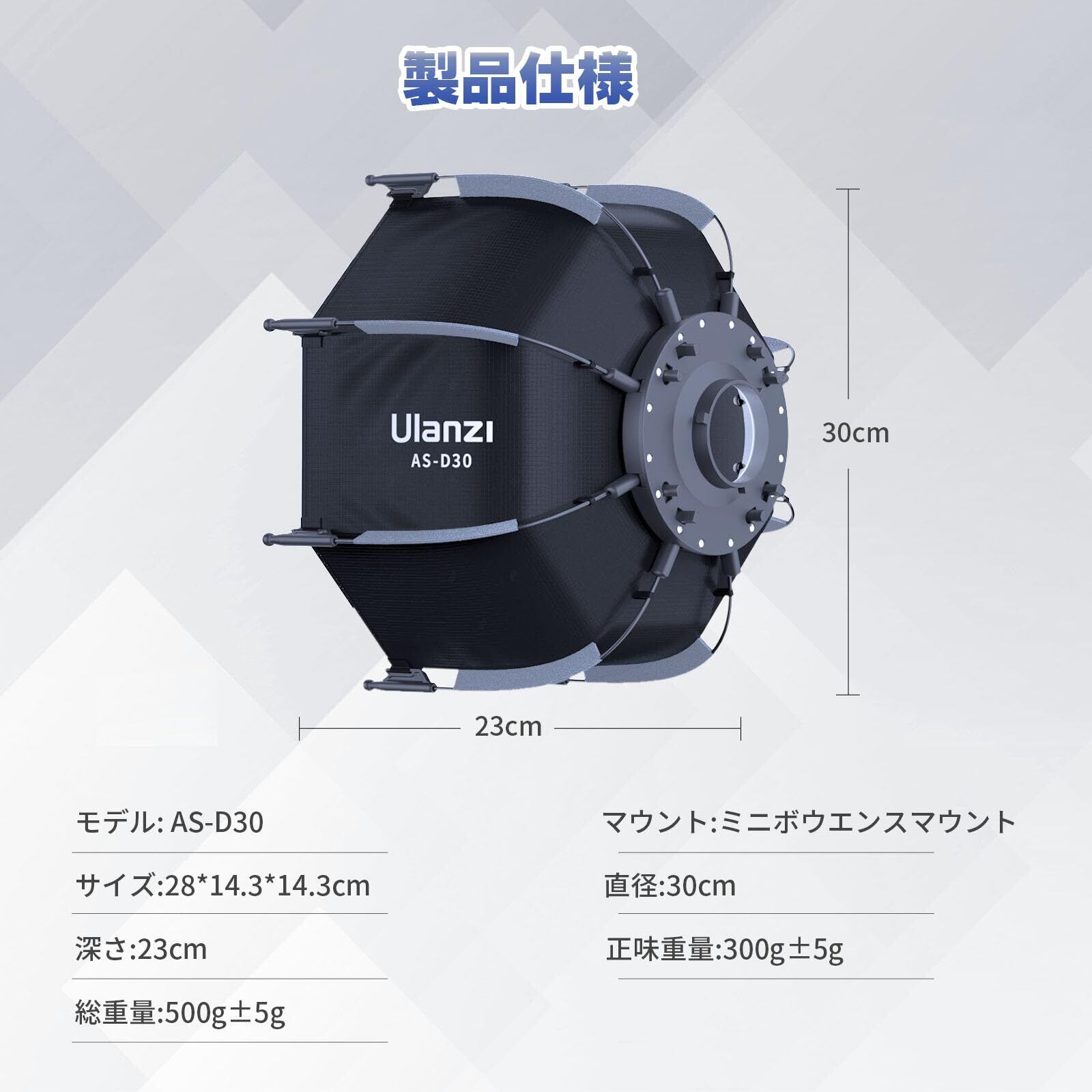 【限定セール】Ulanzi AS-D30 30cm八角形ソフトボックス ソフトボックス アンブレラ ソフトボックス オクタゴンボックス 折りたたみ式 ディフューザー アンブレラタイプ 組立不要 バッグ+ハニカムグリッド+ディフューザー付き フラッシュ スタジオ ストロボなど適用 ミニボウエンスマウント Ulanzi 40wCOB/60Wライトに対応