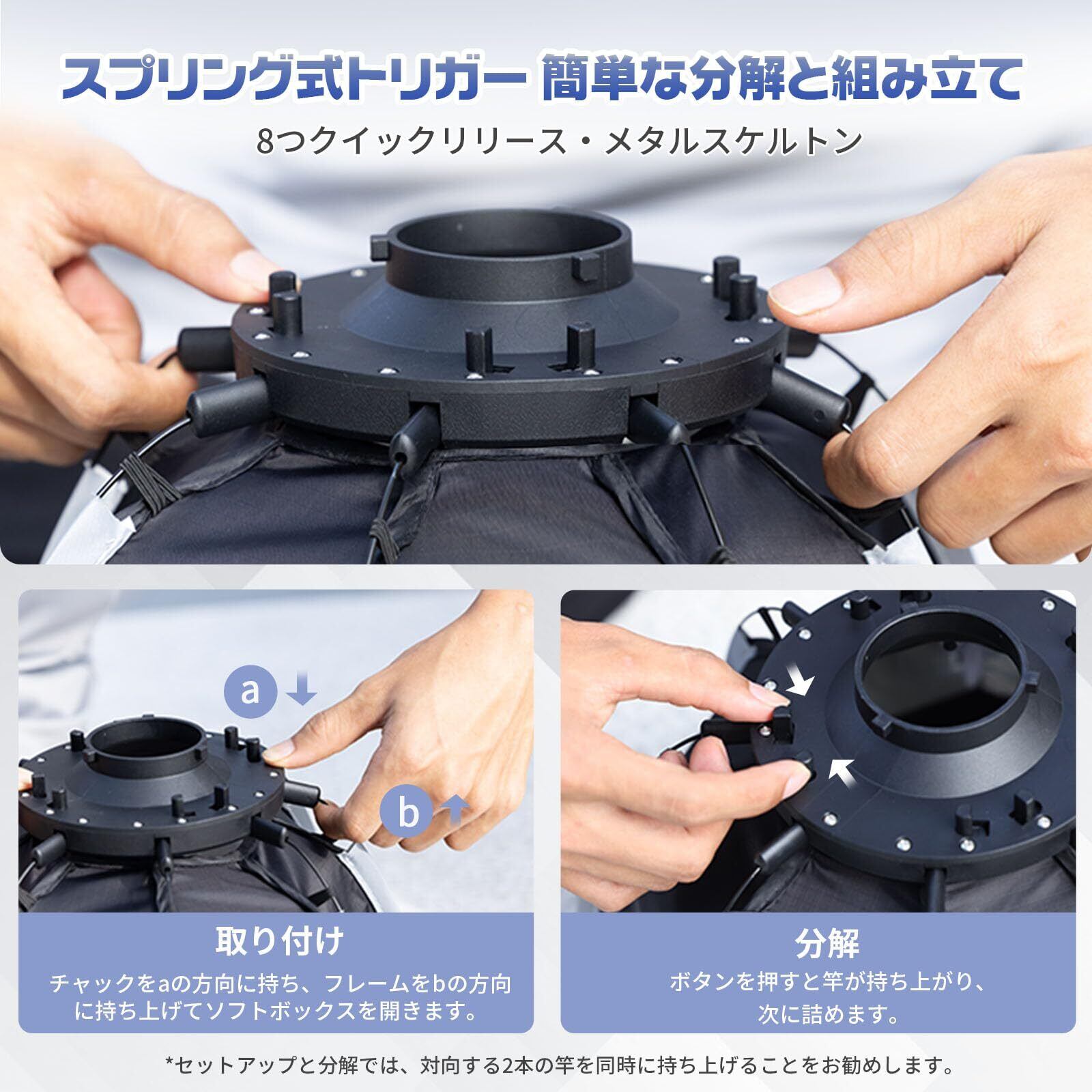 【操作簡単】ソフトボックスは一体構造で、わずか数秒で瞬時に開閉できます。従来のバージョンよりも便利で効率的です。8 本の弾力性のあるリブは、何万回のプレスや長年の使用にも歪みなく耐えることができ、簡単に折りたたむことができ、付属のキャリングバッグに収まるので保管も簡単です。